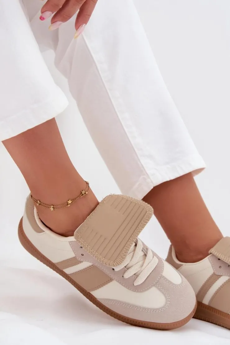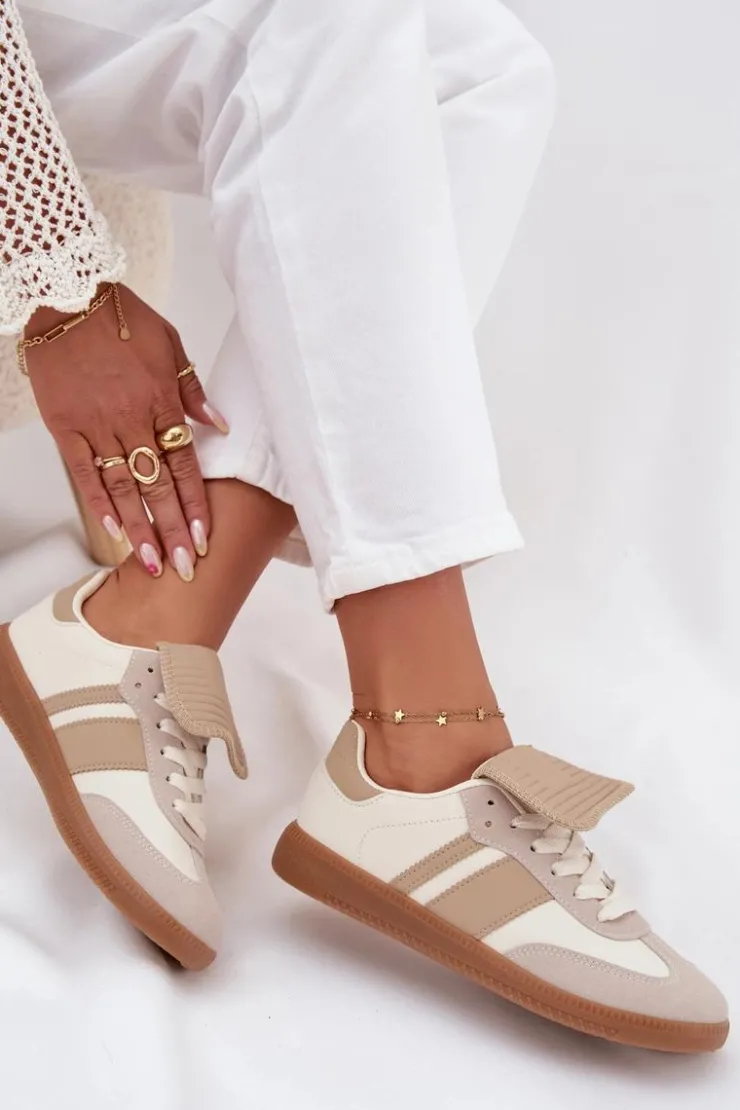 Damskie sneakersy wykonane z eko skóry. Charakteryzują się unikalnym, wywiniętym językiem, który nadaje im nowoczesny wygląd. Oferują komfort dzięki miękkiej wkładce z piankowego tworzywa, która zapewnia doskonałą amortyzację i wygodę przez cały dzień. Sznurowane, co pozwala na idealne dopasowanie do stopy. Te sneakersy to świetny wybór na co dzień. Przy wyborze rozmiaru prosimy kierować tabelą rozmiarów.