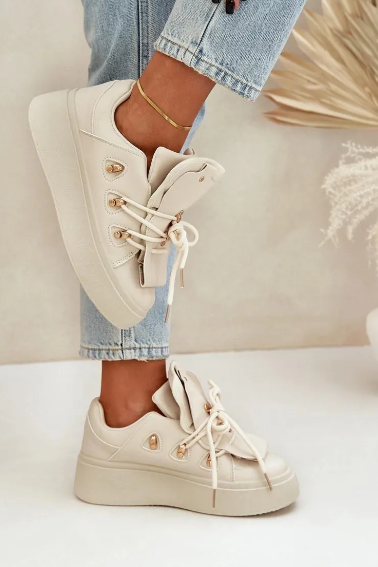 Damskie sneakersy wykonane z wysokiej jakości eko skóry to idealny wybór dla miłośniczek modnych rozwiązań. Osadzone na masywnej platformie, dodają kilku centymetrów wzrostu, jednocześnie zapewniając stabilność i komfort noszenia. Wkładka z miękkiej pianki zapewni wygodę nawet podczas długiego użytkowania. Ten stylowy fason idealnie dopełni wiele casualowych stylizacji! Przy wyborze rozmiaru prosimy kierować się tabelą rozmiarów.