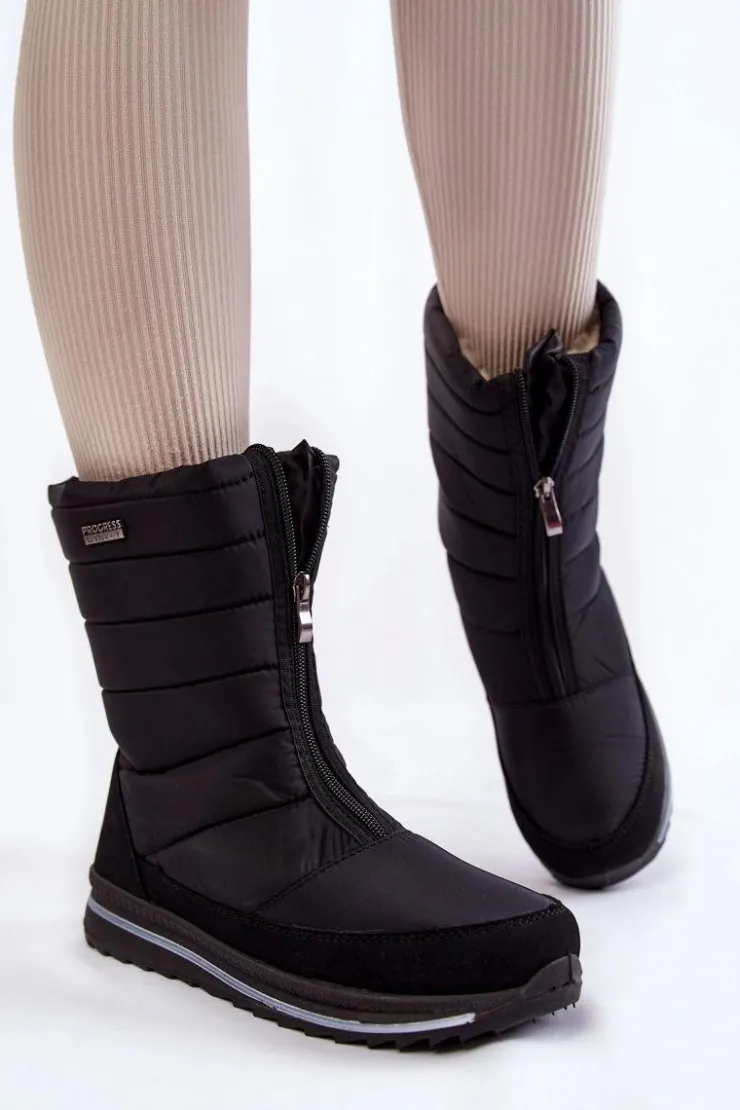 Damskie śniegowce są lekkie i wygodne w użytkowaniu. Wykonane z nieprzemakalnych materiałów. Śniegowce posiadają z przodu suwak. Modna cholewka z przeszyciami została wewnątrz ocieplona grubym futerkiem. Osadzone na platformie ze żłobieniami. Logo marki Progress znajduje się z boku oraz z tyłu śniegowców. Przy wyborze rozmiaru, prosimy sugerować się tabelą rozmiarów.