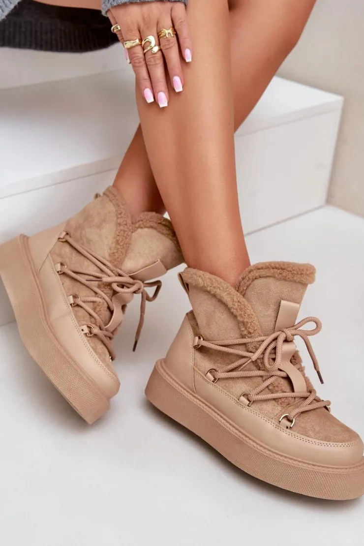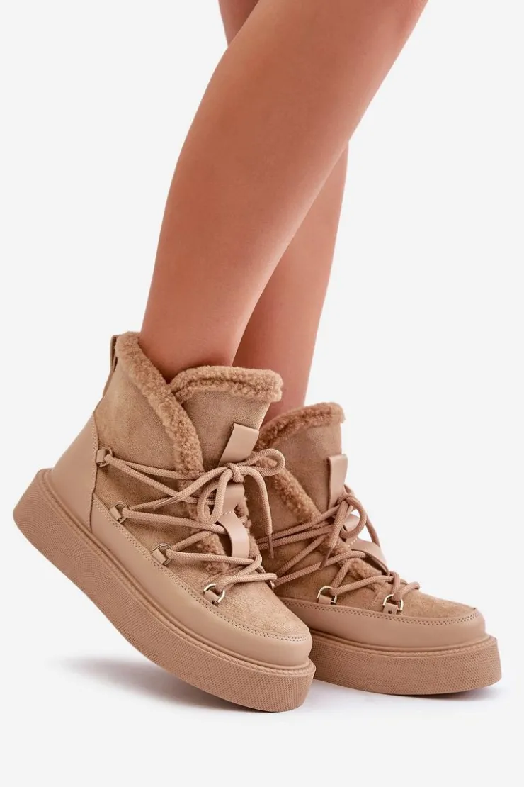 Damskie śniegowce z eko zamszu to połączenie stylu i funkcjonalności. Osadzone na platformie, zapewniają wygodę oraz dodatkową izolację od zimna. Wnętrze ocieplane miękkim futerkiem, które gwarantuje ciepło w chłodne dni. Modne wiązanie z przodu dodaje im wyjątkowego charakteru, czyniąc je idealnym wyborem na zimowe spacery i codzienne stylizacje. Przy wyborze rozmiaru prosimy sugerować się tabelą rozmiarów.