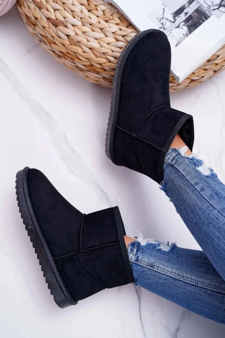 Boto Śniegowce Damskie*Damskie Botki Śniegowce Ocieplane Czarne Borneo