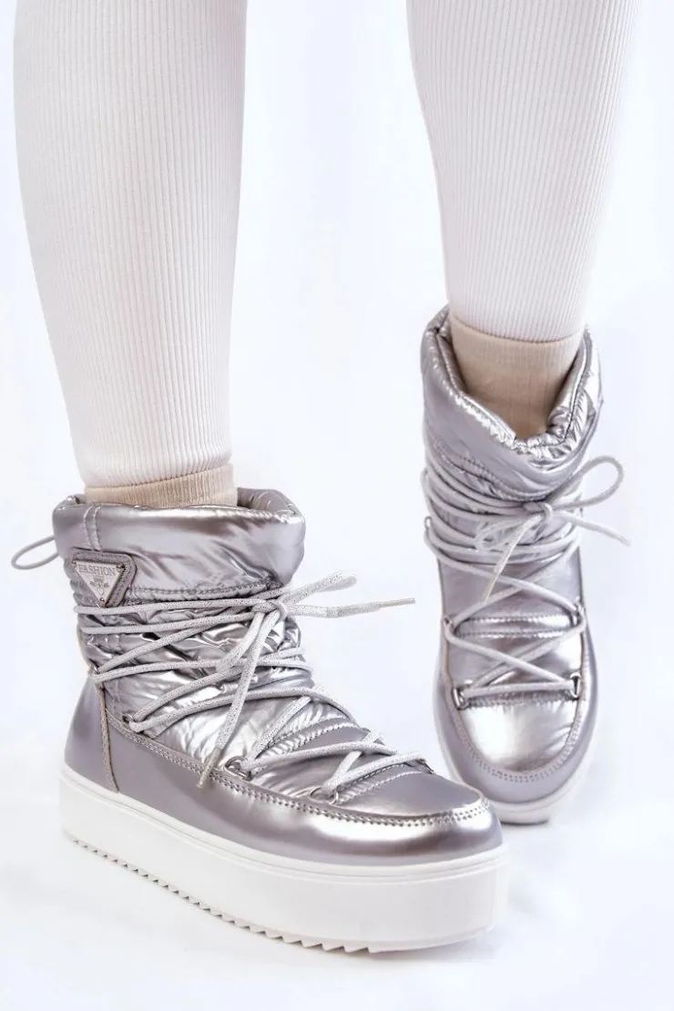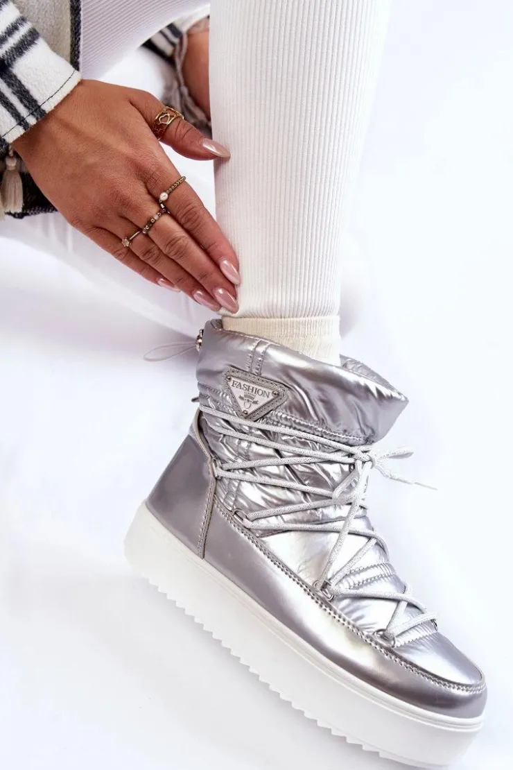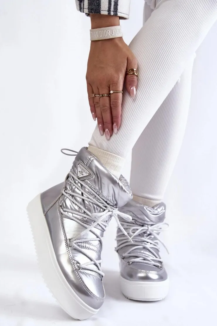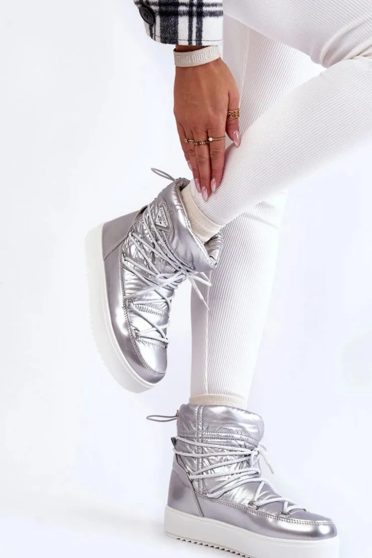 Damskie śniegowce zostały wykonane z materiałów odpornych na wiatr oraz mróz w połączeniu z eko skórą. Model wsuwany z dodatkowym sznurowaniem z przodu oraz ściągaczem u góry cholewki. Śniegowce zostały ocieplone miłym w dotyku futerkiem. Osadzone na platformie, która izoluje od zimnego i mokrego podłoża. Ten model powinien być właśnie Twój! Przy wyborze rozmiaru prosimy sugerować się tabelą rozmiarów.