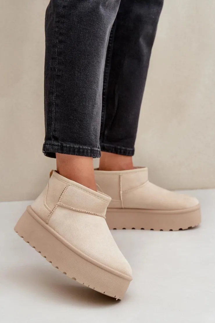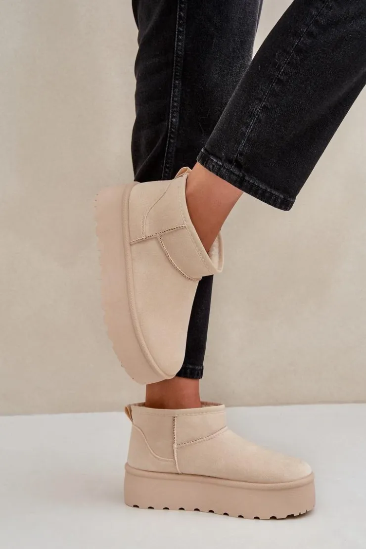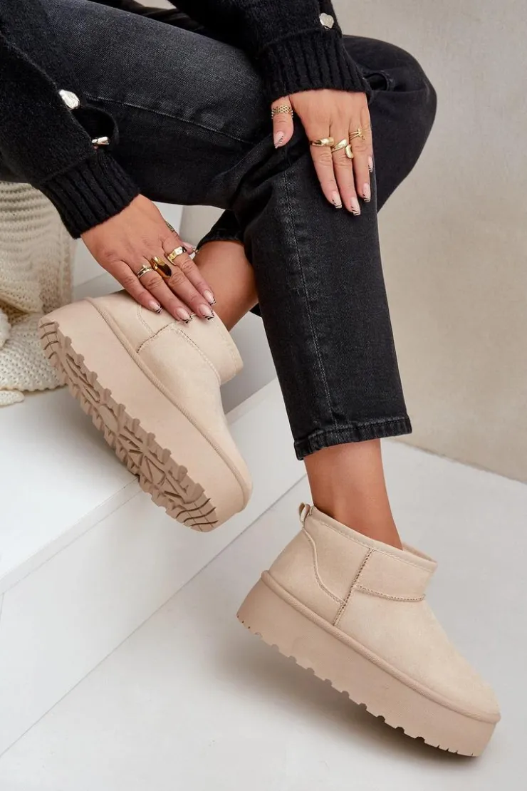 Damskie śniegowce wykonane z eko zamszu. Osadzone na masywnej platformie z gumowego tworzywa. Cholewka do kostki. Środek ocieplony futerkiem. Ten modny model będzie idealny do niemalże każdej jesienno-zimowej stylizacji! Koniecznie powinnaś je mieć! Przy wyborze rozmiaru prosimy sugerować się tabelą rozmiarów.