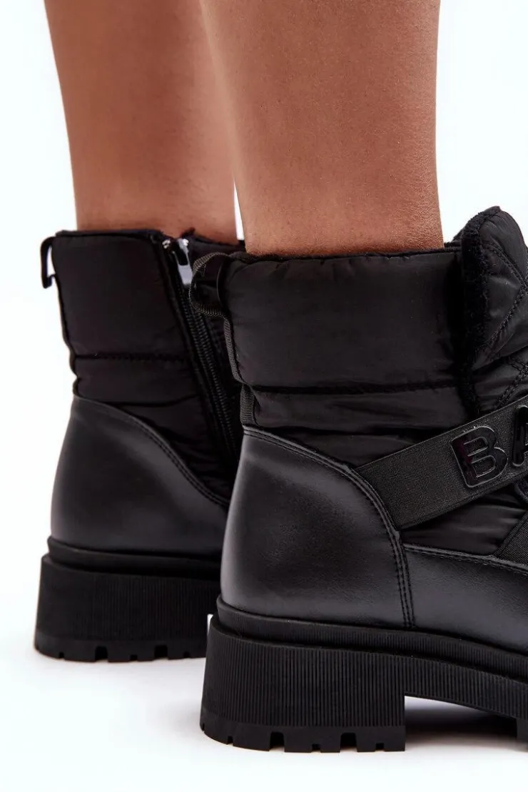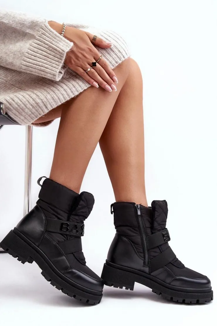 Damskie śniegowce zostały wykonane z połączenia eko skóry i materiału tekstylnego. Osadzone na płaskim obcasie i platformie. Model ten zapinany na suwak z boku. Środek ocieplony grubym kocem obuwniczym. Dwa elastyczne paski z przodu. Noski zaokrąglone. Usztywniony zapiętek. Sprawdź naszą pozostałą ofertę śniegowców! Nie czekaj kup już dziś! Przy wyborze rozmiaru, prosimy sugerować się tabelą rozmiarów.