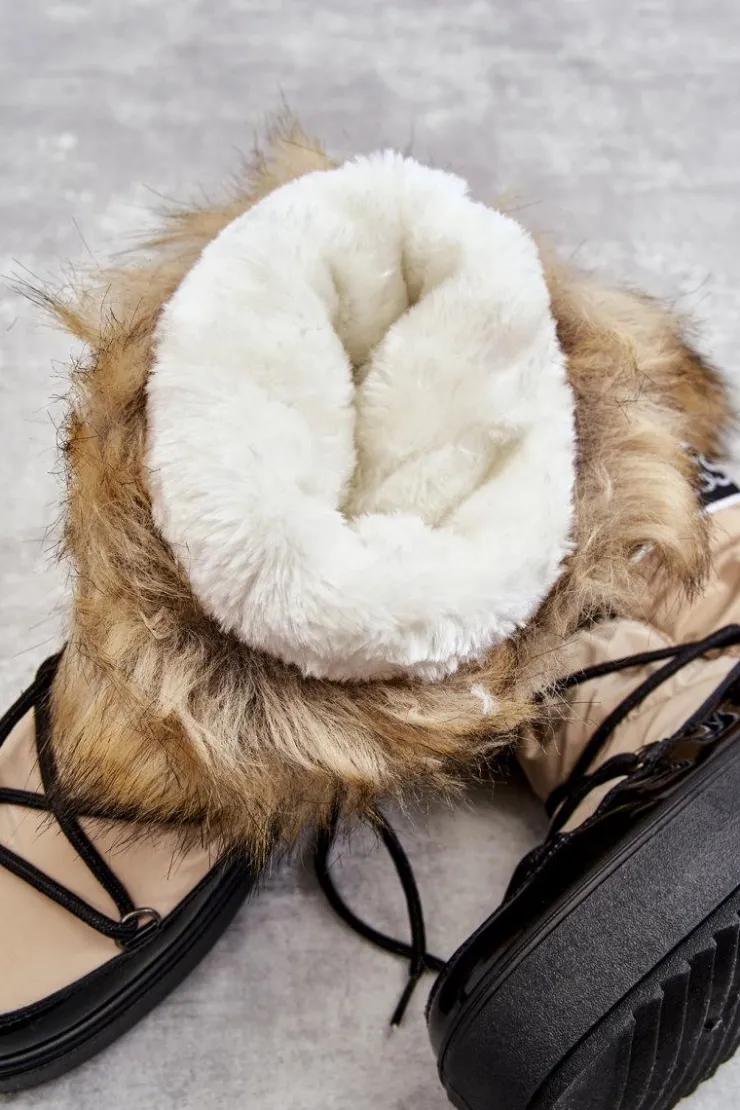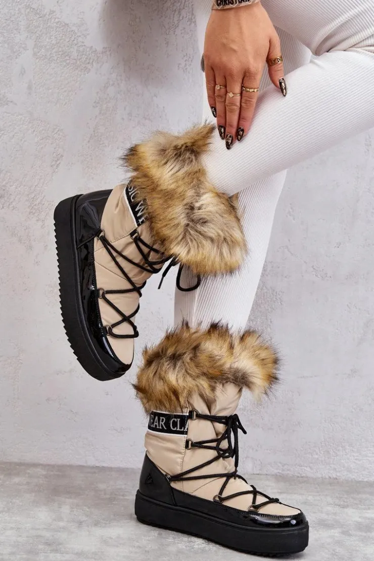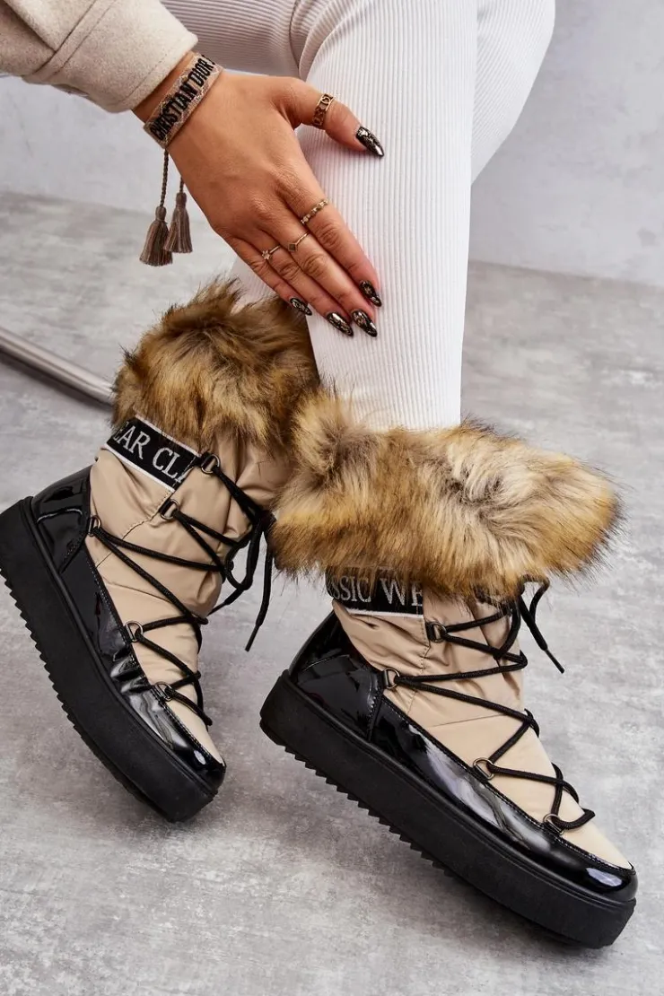 Modne śniegowce zostały wykonane z materiału odpornego na zimno i wiatr. Cholewka zakończona sztucznym futerkiem. Model klasycznie sznurowany. Śniegowce zostały osadzone na masywnej platformie. Posiadają w środku ocieplenie w postaci grubego futerka. Dekorowane tasiemką z nadrukiem. Niezwykle ciepłe, a zarazem stylowe. Powinnaś je mieć! Przy wyborze rozmiaru prosimy sugerować się tabelą rozmiarów.