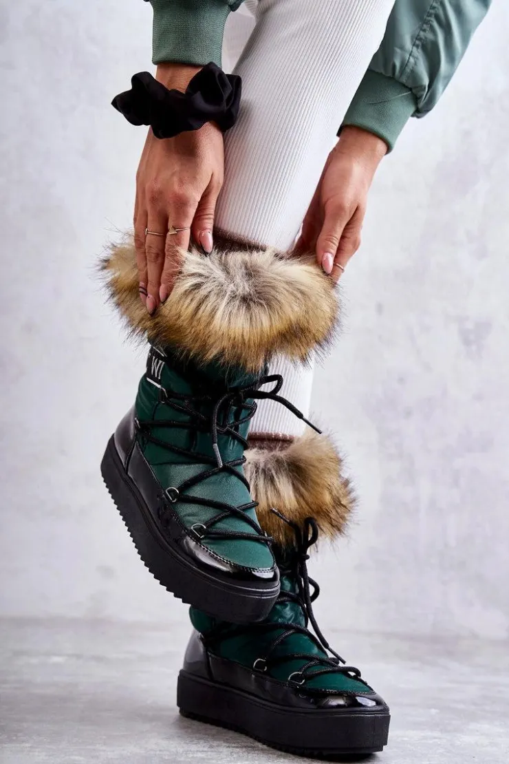 Modne śniegowce zostały wykonane z materiału odpornego na zimno i wiatr. Cholewka zakończona sztucznym futerkiem. Model klasycznie sznurowany. Śniegowce zostały osadzone na masywnej platformie. Posiadają w środku ocieplenie w postaci grubego futerka. Dekorowane tasiemką z nadrukiem. Niezwykle ciepłe, a zarazem stylowe. Powinnaś je mieć! Przy wyborze rozmiaru prosimy sugerować się tabelą rozmiarów.