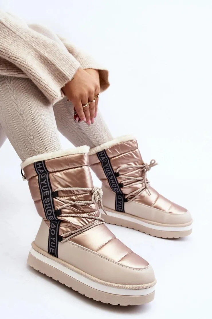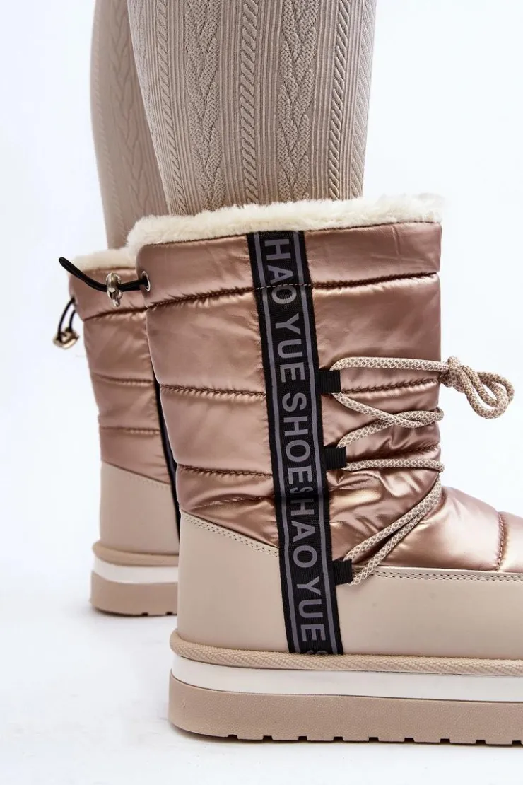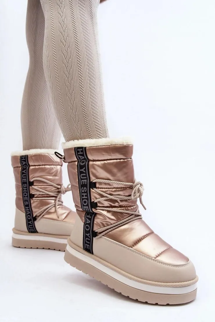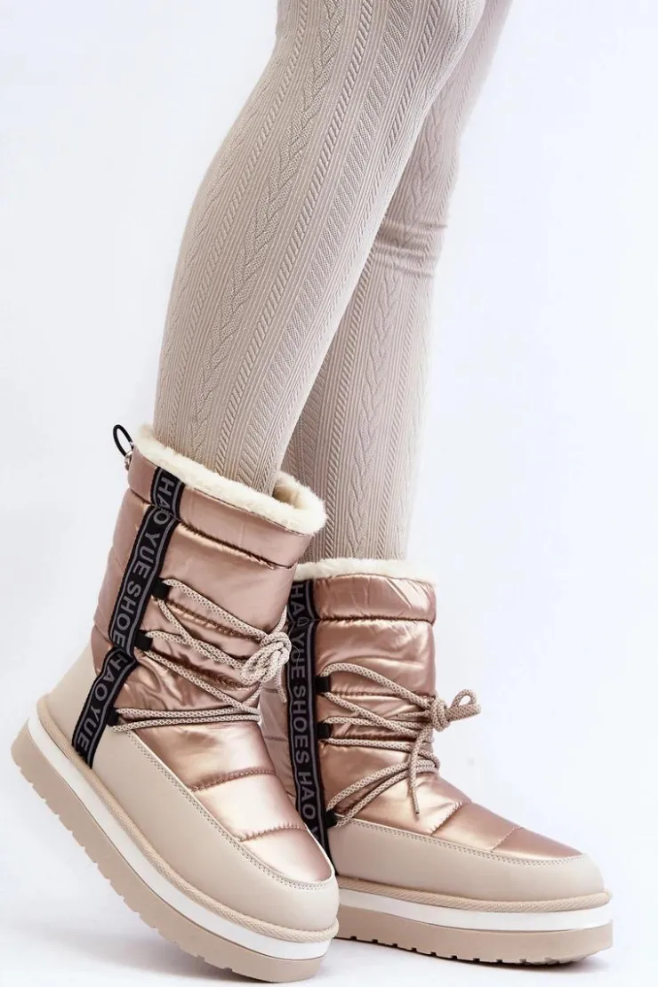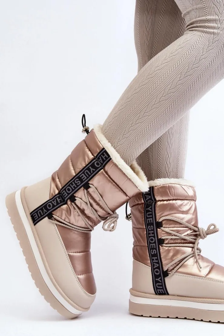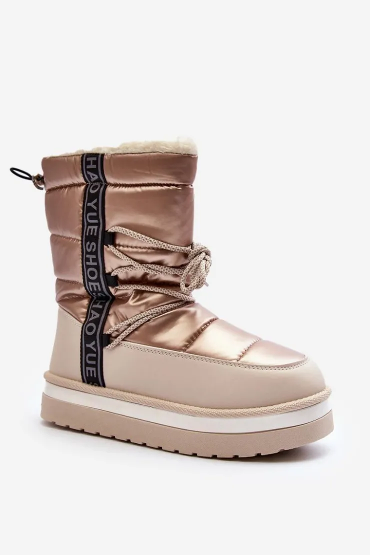 Boto Śniegowce Damskie*Damskie Śniegowce Z Wiązaniem Beżowe Lilara