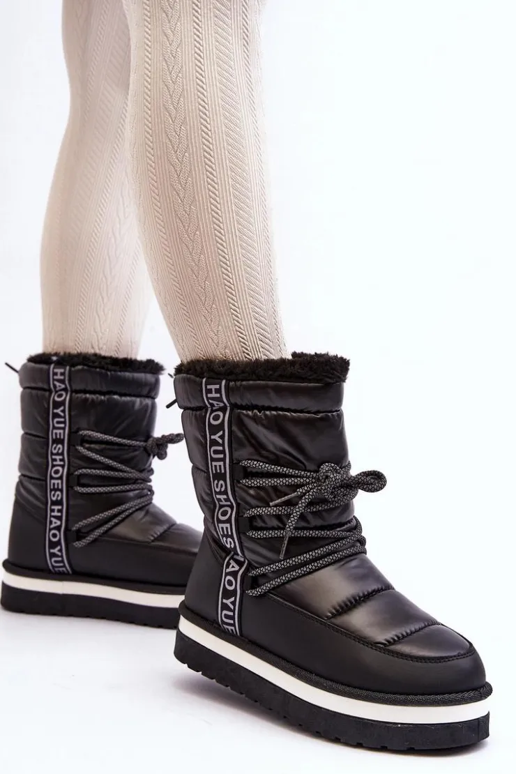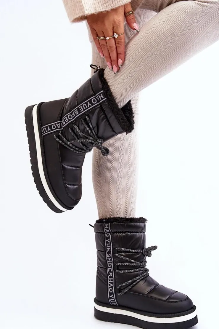 Boto Śniegowce Damskie*Damskie Śniegowce Z Wiązaniem Czarne Lilara