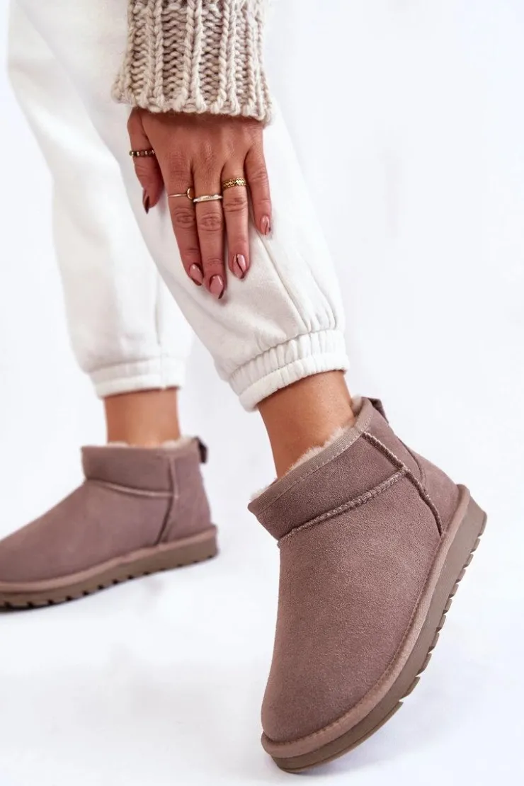 Klasyczne śniegowce idealnie sprawdzą się podczas chłodnych dni. Wykonane z wysokiej jakości naturalnych skór. Wnętrze butów zostało ocieplone grubym futerkiem ekologicznym. Ten klasyczny model dopasujesz do wielu stylizacji. Botki posiadają gumową platformę, która świetnie odizoluje od podłoża i jest dodatkowo antypoślizgowa. Powinnaś mieć ten model w swojej szafie! Przy wyborze rozmiaru prosimy sugerować się tabelą rozmiarów.