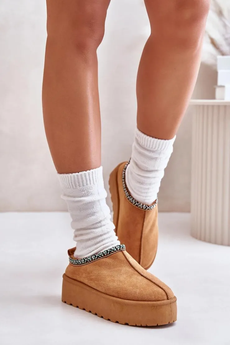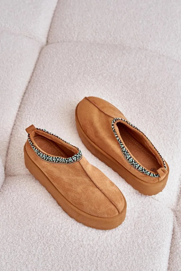 Boto Śniegowce Damskie|Kapcie Klasyczne*Kapcie Damskie Na Platformie Z Haftem Camel Neroma Brązowy