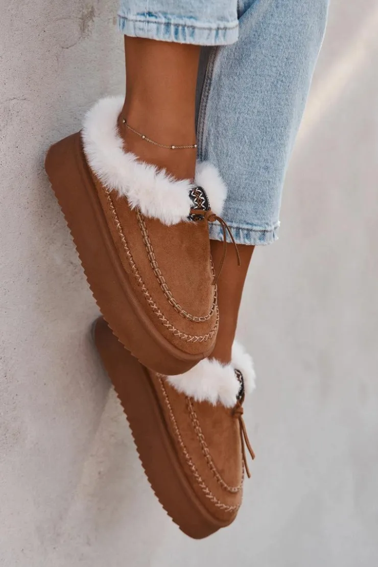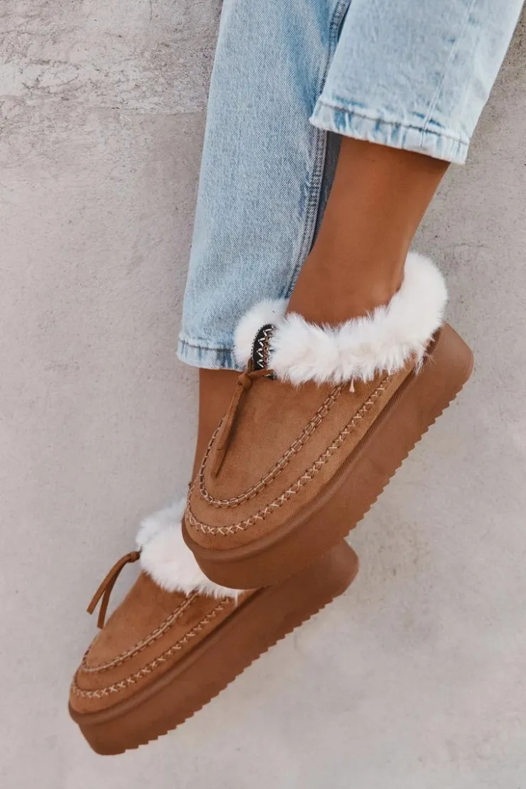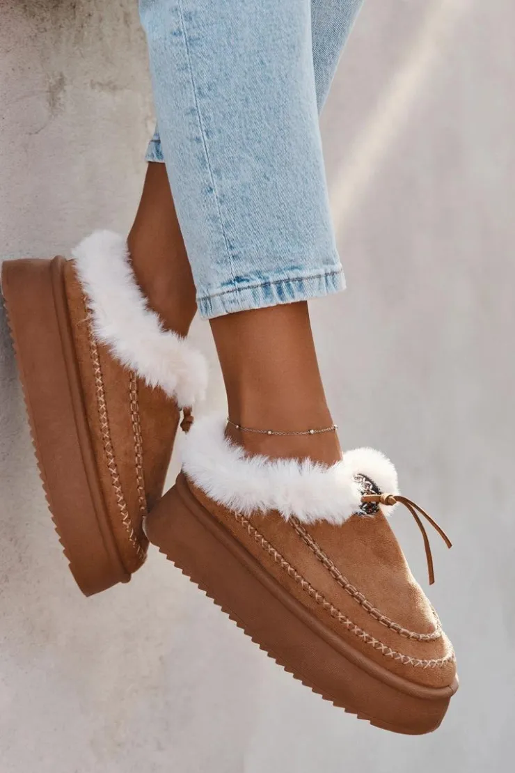 Śniegowce damskie wykonane z eko zamszu. Osadzone na masywnej platformie skutecznie izolują stopy od zimnego podłoża, zapewniając wygodę nawet podczas długiego noszenia. Wyróżniają się stylowym futerkiem, które dodaje im zimowego charakteru oraz dekoracyjnymi przeszyciami, podkreślającymi unikalny wygląd modelu. To idealny wybór na chłodne dni – praktyczne, ciepłe i zarazem stylowe obuwie, które świetnie dopełni codzienne zimowe stylizacje.