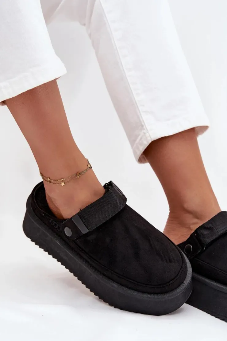 Ciepłe i wygodne śniegowce damskie wykonane z miękkiego eko zamszu to niezawodny wybór na zimowe dni. Osadzone na masywnej platformie skutecznie izolują stopy od zimnego podłoża, zapewniając komfort nawet podczas długich spacerów. Wnętrze wykończone miękkim futerkiem otula stopę przyjemnym ciepłem i chroni przed mrozem. Model posiada praktyczny, ruchomy pasek na rzep – możesz nosić go zarówno z przodu, jak i z tyłu buta. To idealne obuwie na co dzień.