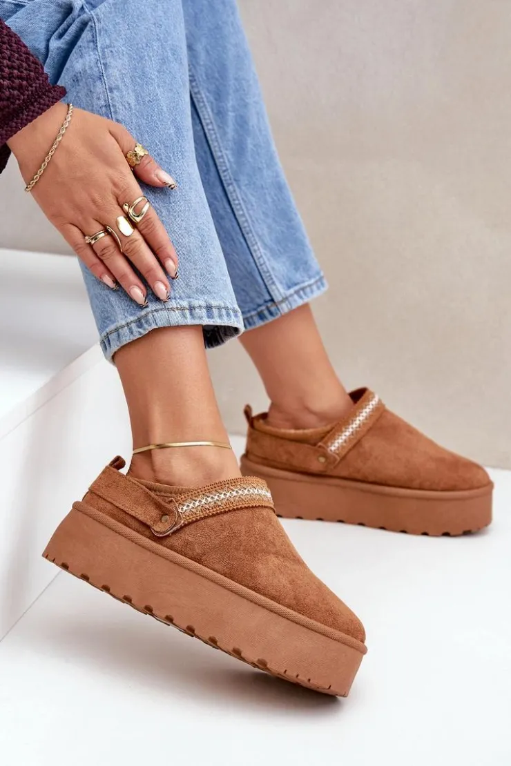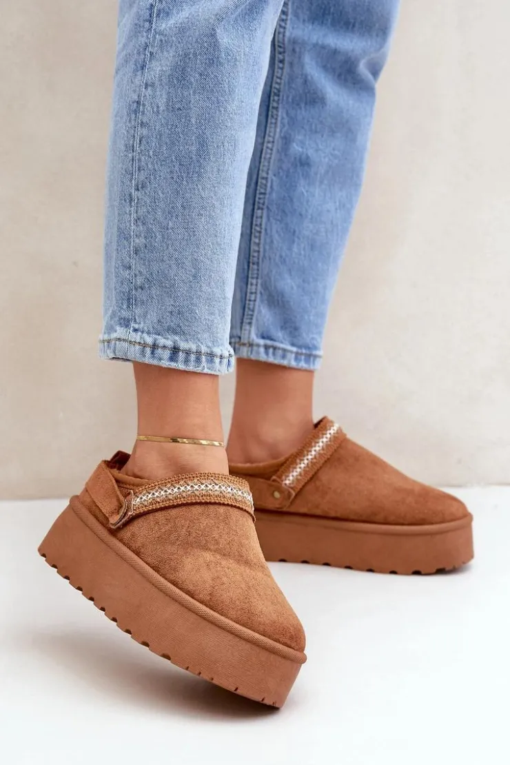 Boto Śniegowce Damskie|Kapcie Klasyczne*Śniegowce Z Ozdobnym Haftem Camel Selithria Brązowy