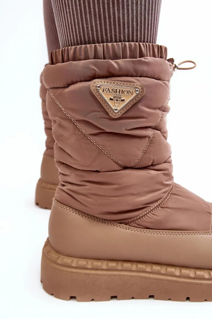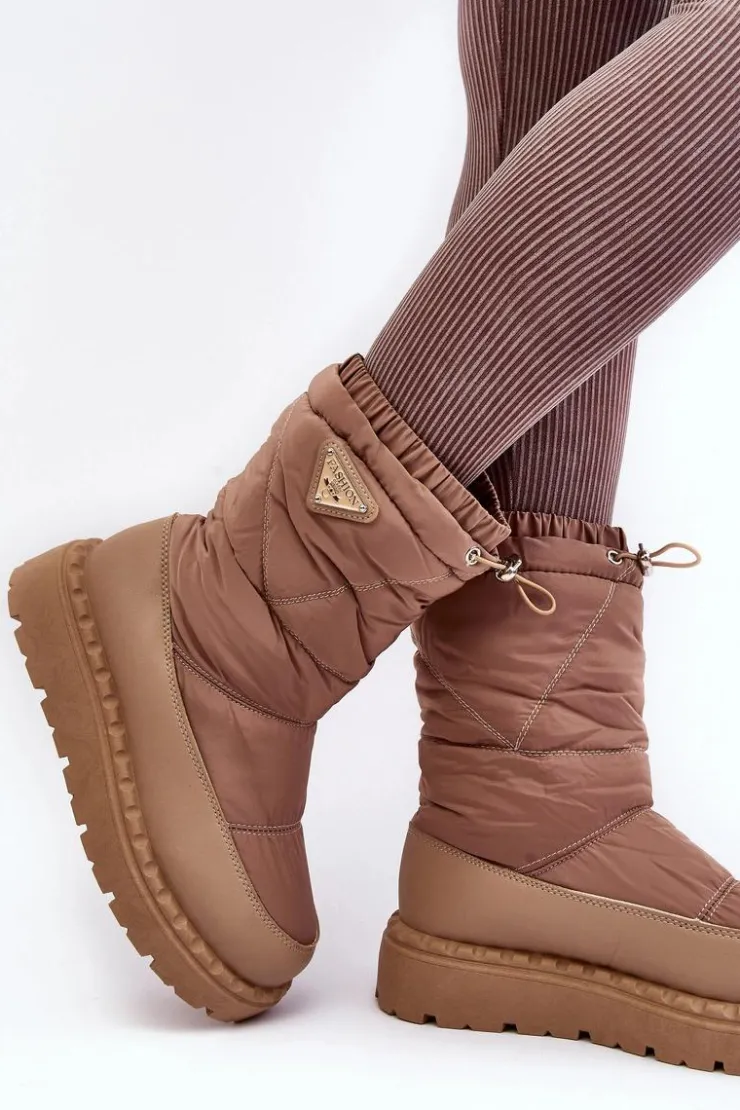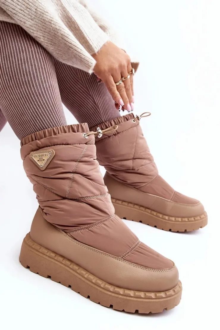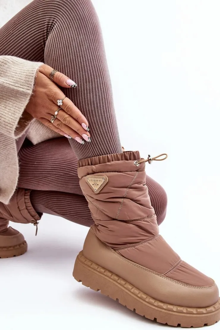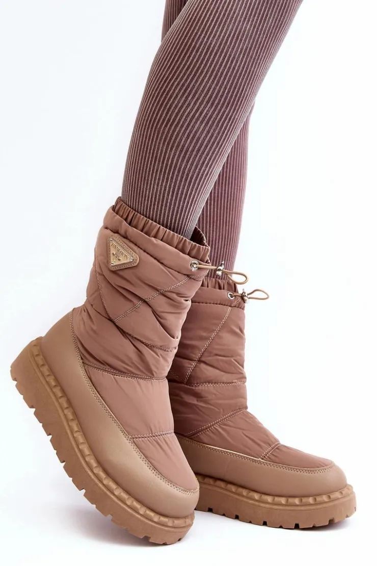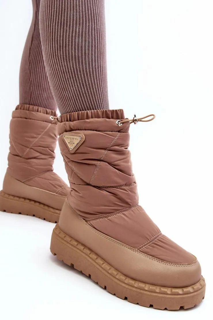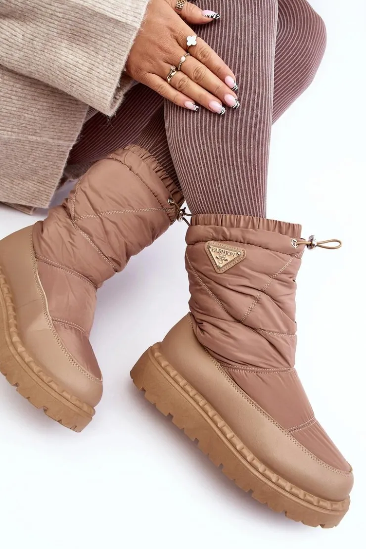 Śniegowce damskie osadzone na grubej podeszwie z gumowego tworzywa. Wykonane z połączenia eko skóry i materiału tekstylnego. Środek ocieplony grubym futerkiem. Na górze cholewki ściągacz. Idealne na mroźne dni! Koniecznie powinnaś je mieć! Przy wyborze rozmiaru prosimy sugerować się tabelą rozmiarów.