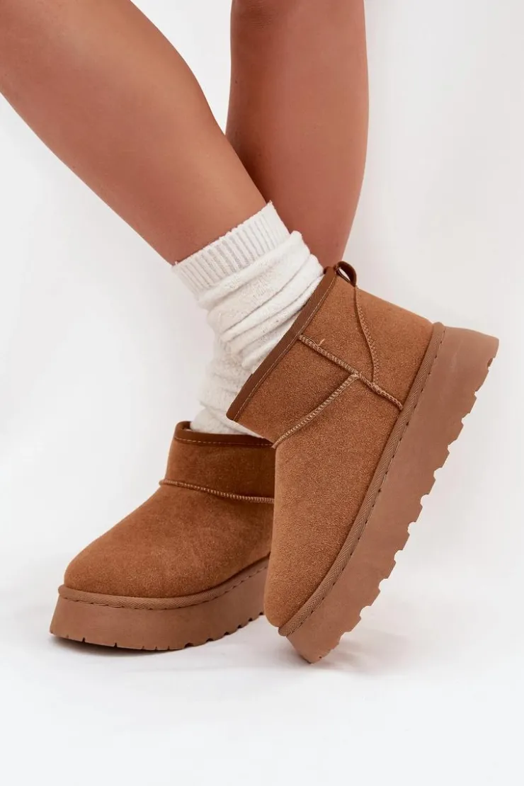 Poznaj swoje nowe ulubione buty na zimę – śniegowce damskie Vesirae w kolorze camel to idealne połączenie stylu, wygody i ciepła. Wykonane z miękkiego eko-zamszu i wyściełane puszystym futerkiem, zapewniają przytulność nawet w największy mróz. Dzięki wysokiej cholewce i solidnej platformie (ok. 3 cm), Twoje stopy pozostaną suche i ciepłe podczas spacerów po zaśnieżonych ulicach.