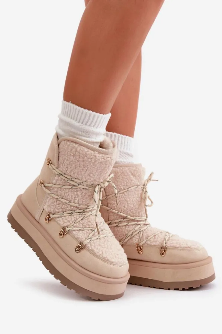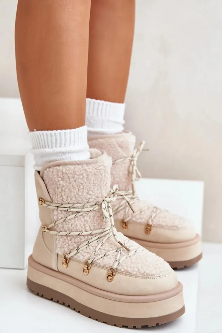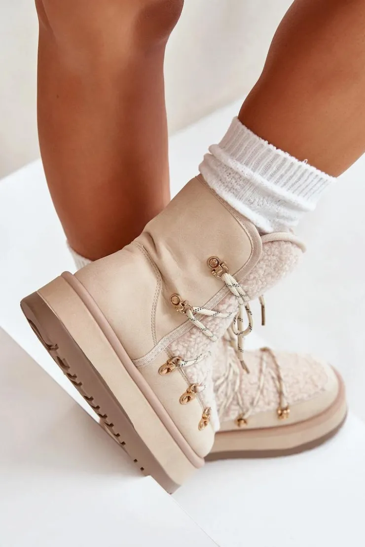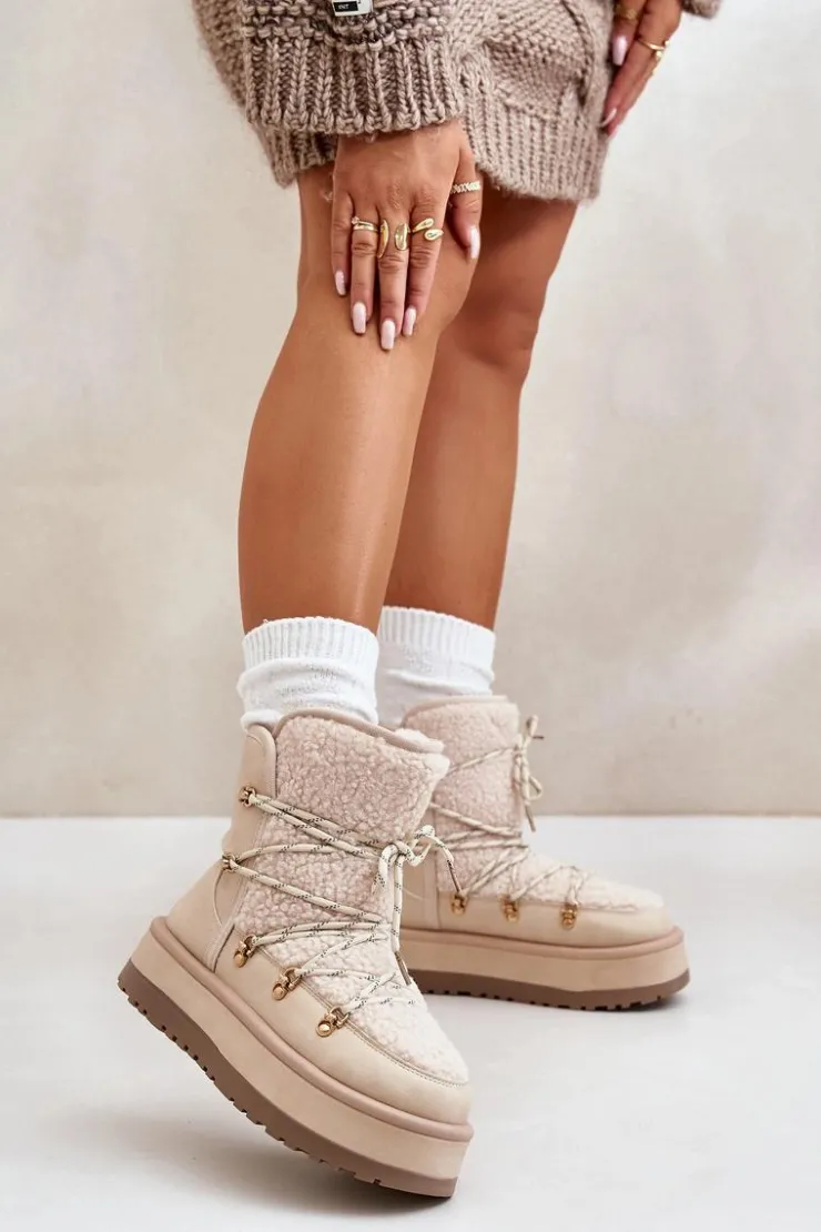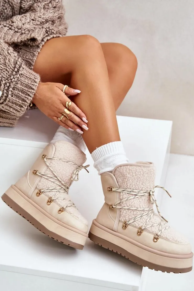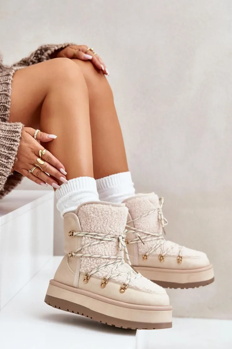 Damskie śniegowce na masywnej platformie, która doskonale odizoluje od zimnego podłoża. Środek ocieplony grubym futerkiem, co zapewni ciepło w mroźne dni. Cholewka z wiązaniem i syntetycznym kożuszkiem. Koniecznie powinnaś je mieć w swojej zimowej garderobie! Przy wyborze rozmiaru prosimy sugerować się tabelą rozmiarów.