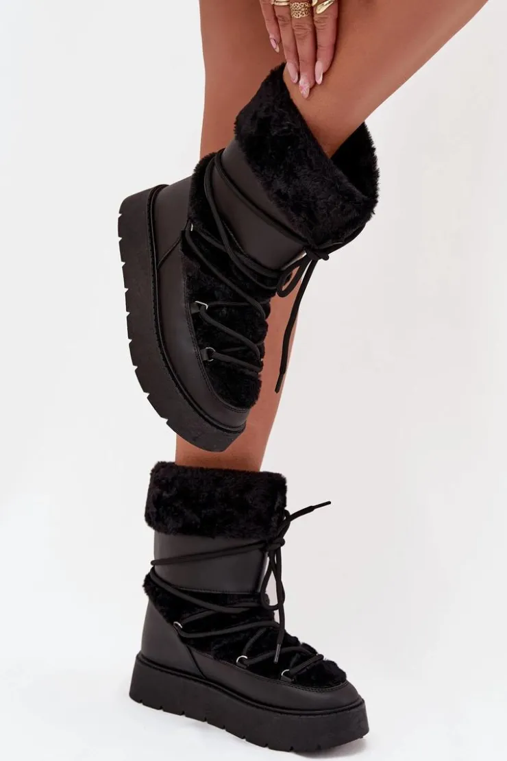 Śniegowce damskie na platformie to połączenie mody i funkcjonalności na zimowe dni. Wykonane z eko skóry. Ciepłe futerko zarówno na zewnątrz, jak i wewnątrz butów, gwarantuje komfort i ciepło nawet w najchłodniejsze dni. Wiązanie pozwala na lepsze dopasowanie. Idealne na zimowe wypady, łączą stylowy wygląd z wygodą i ochroną przed zimnem. Przy wyborze rozmiaru prosimy sugerować się tabelą rozmiarów.