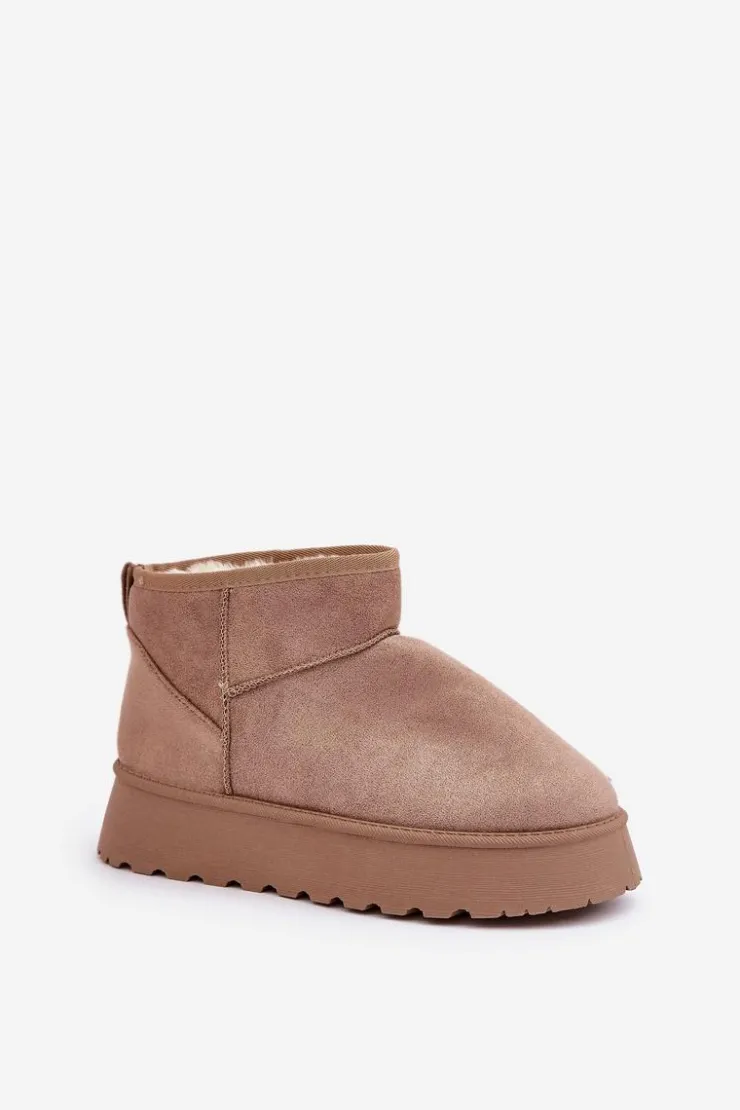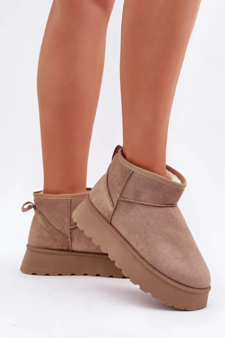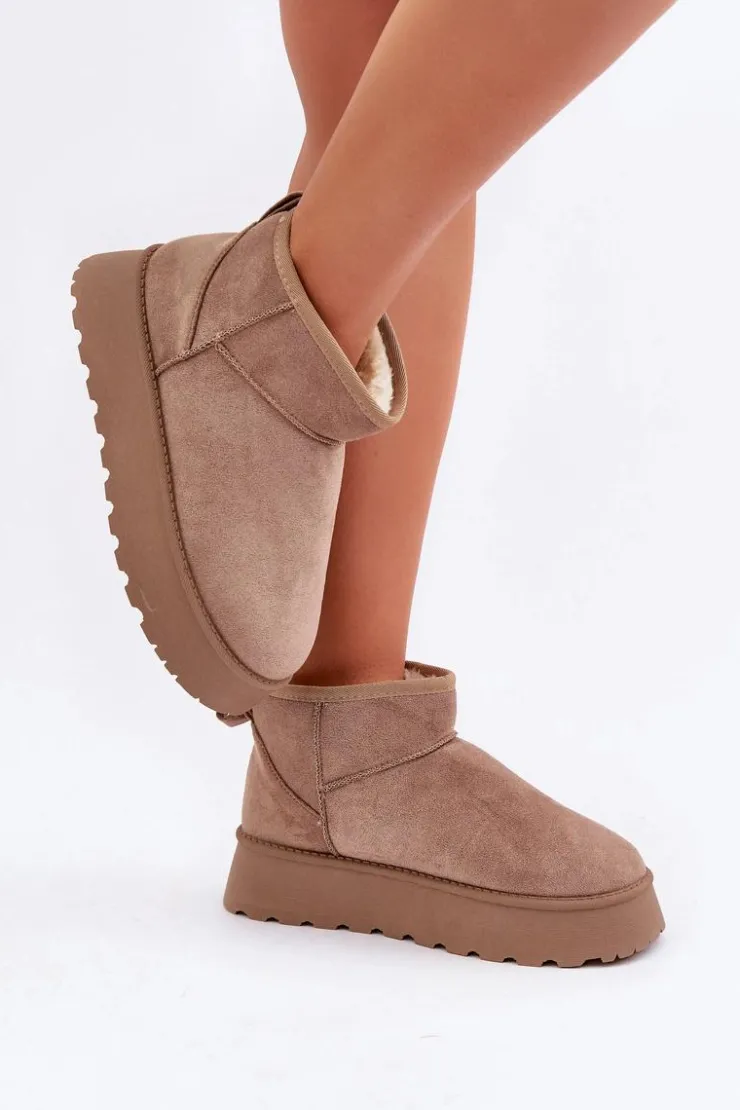 Stylowe śniegowce damskie wykonane z eko zamszu, które zapewnią komfort i ciepło w chłodne dni. Osadzone na modnej platformie, idealnie izolują od zimnego podłoża. Wnętrze ocieplane miękkim futerkiem, które zapewni ciepło w mroźne dni. Doskonałe połączenie wygody i stylowego wyglądu na zimowe dni. Przy wyborze rozmiaru prosimy kierować tabelą rozmiarów.