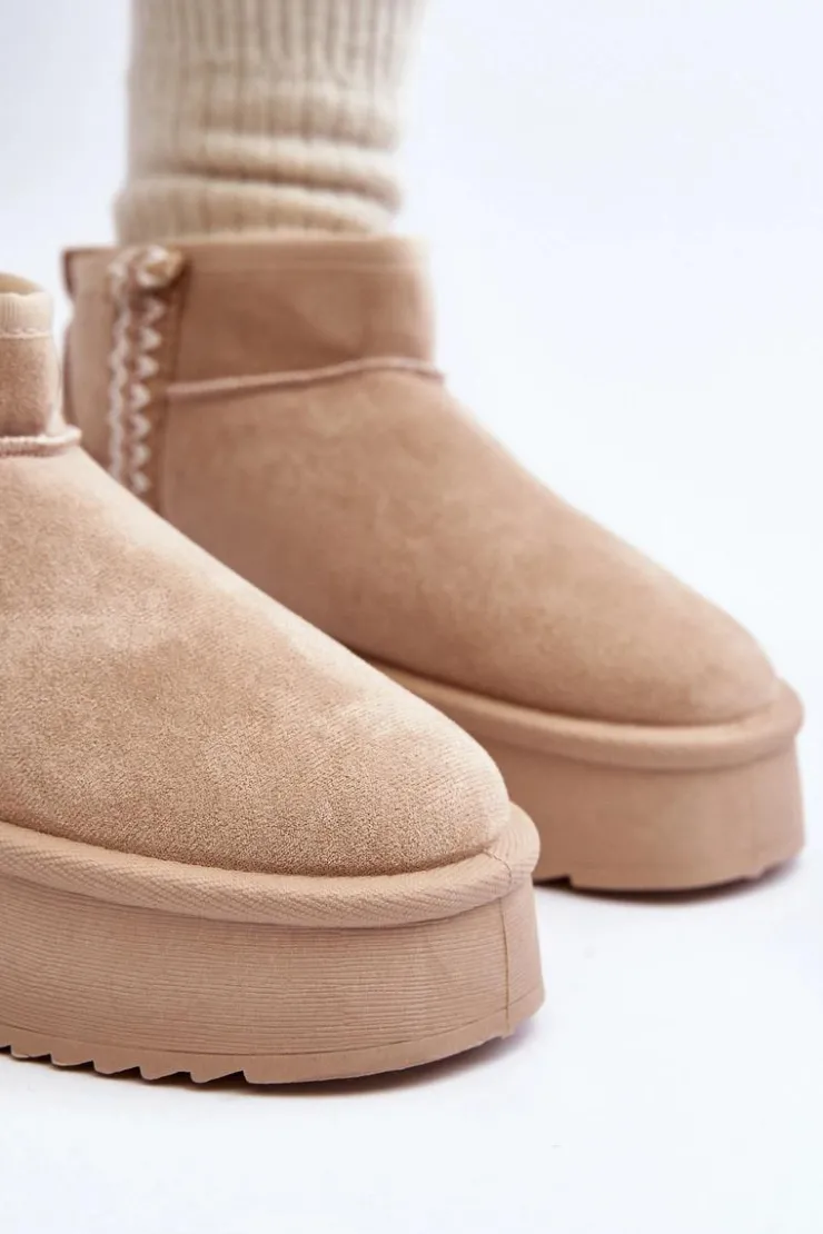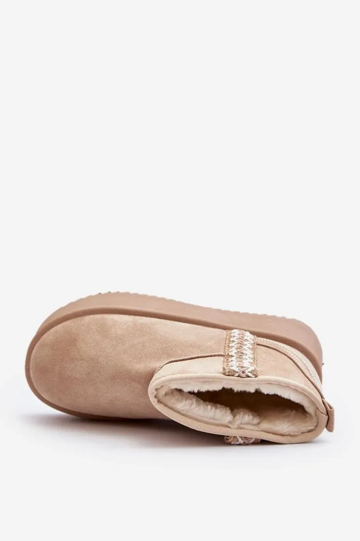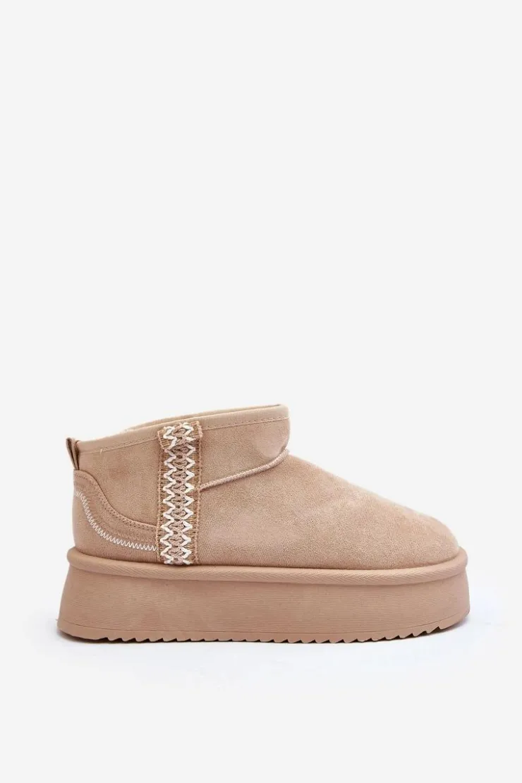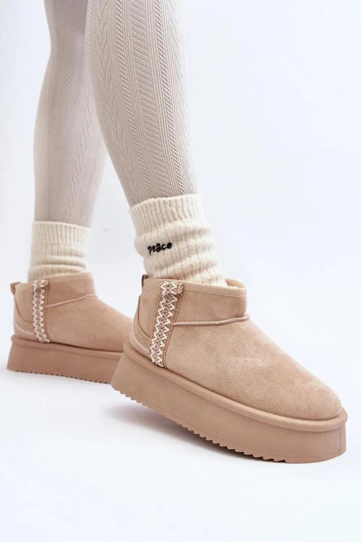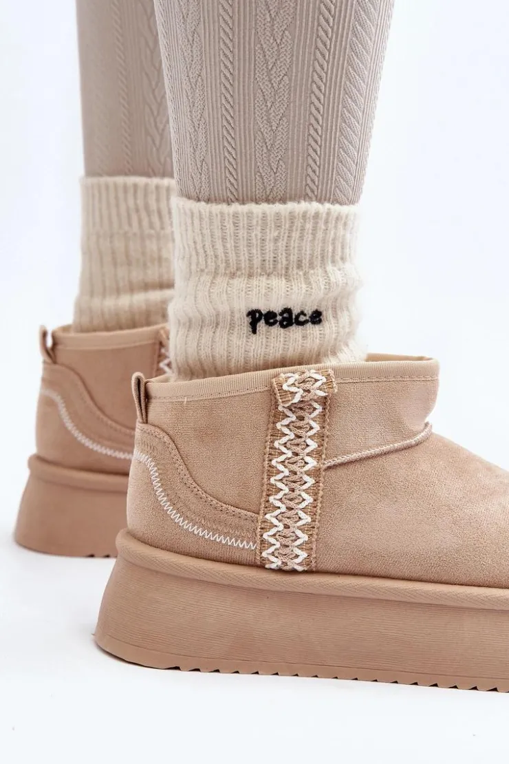 Śniegowce na platformie to najmodniejszy fason tego sezonu! Model ten wykonany został z eko zamszu. Gruba podeszwa z gumowego tworzywa świetnie odizoluje od zimnego podłoża. Cholewka do kostki ozdobiona azteckim wzorem. Środek ocieplony futerkiem. Koniecznie musisz je mieć! Przy wyborze rozmiaru prosimy sugerować się tabelą rozmiarów.