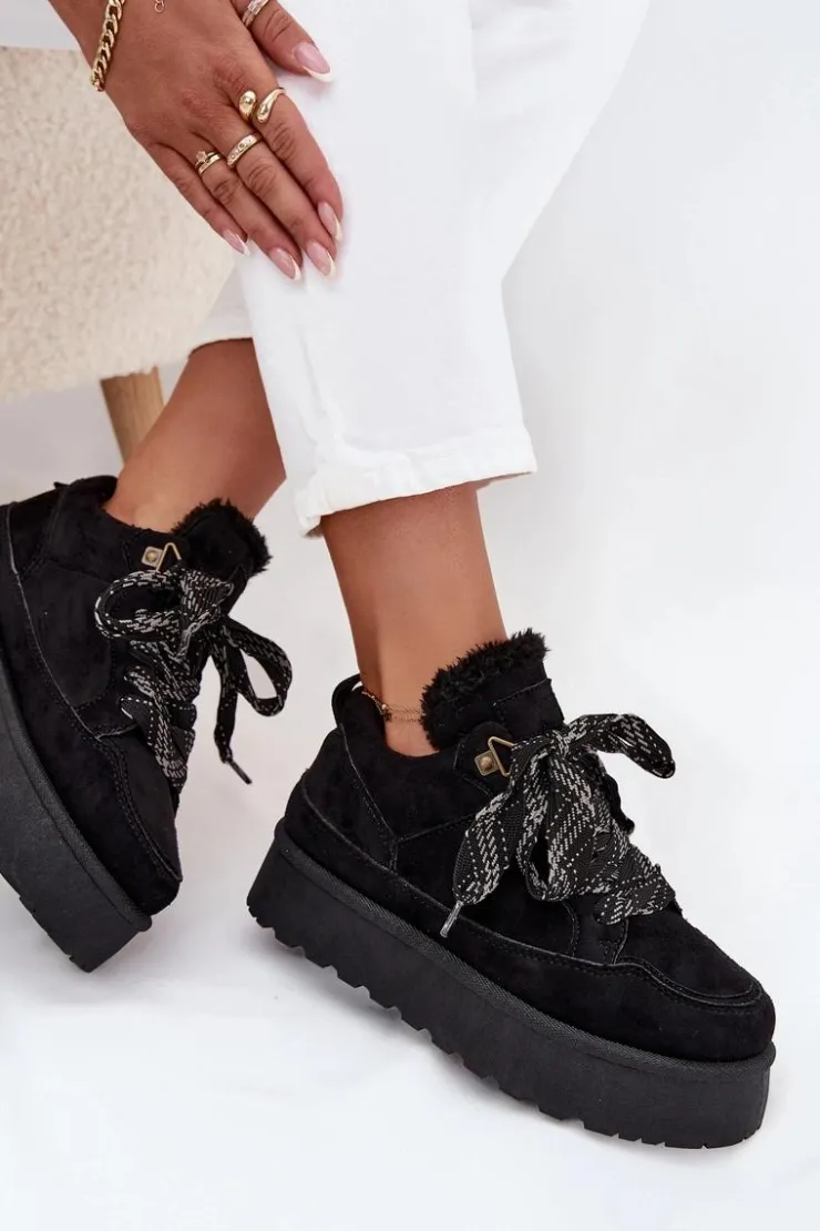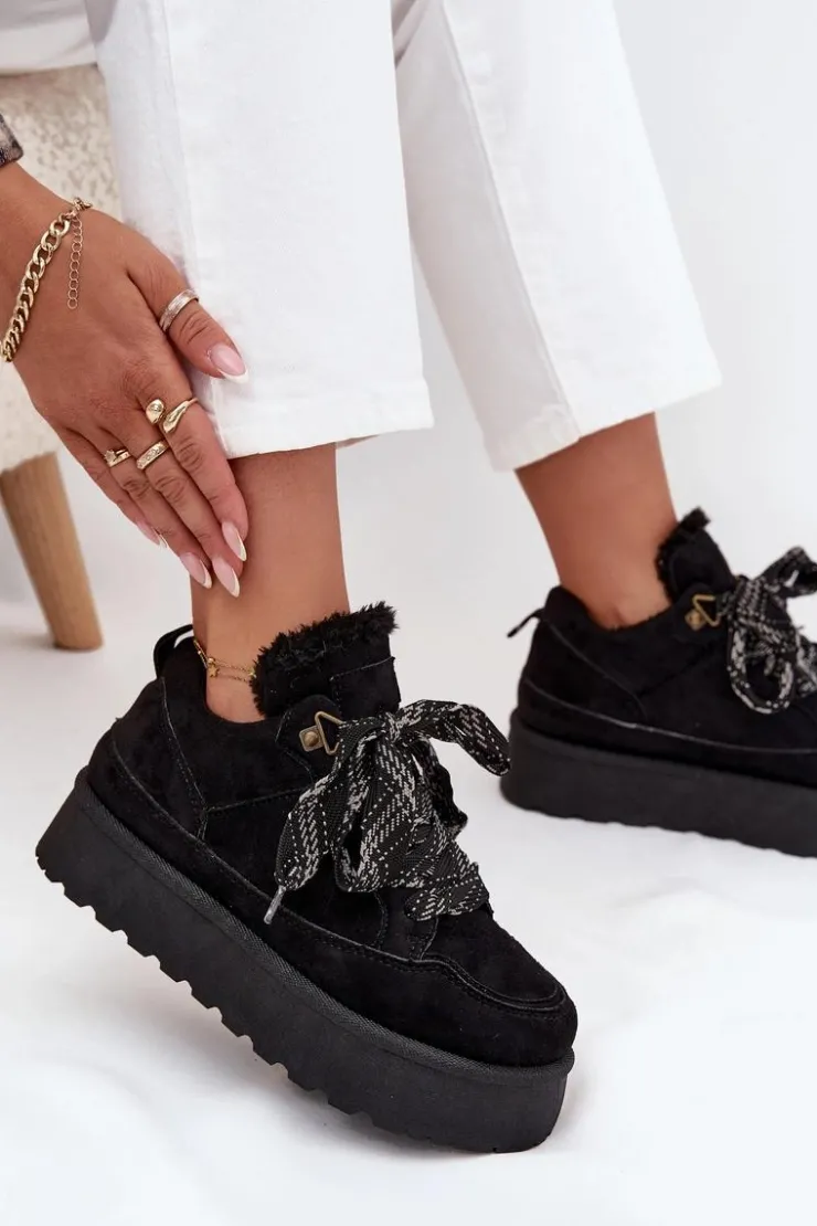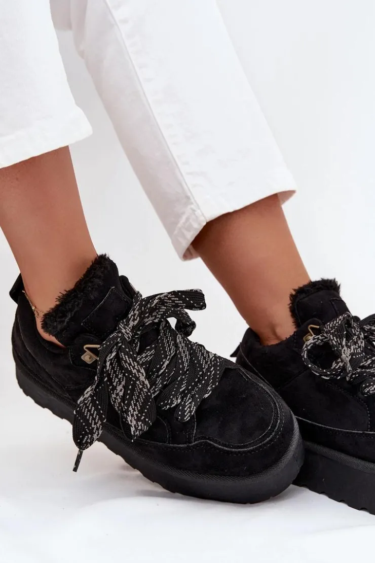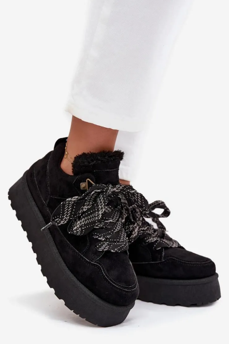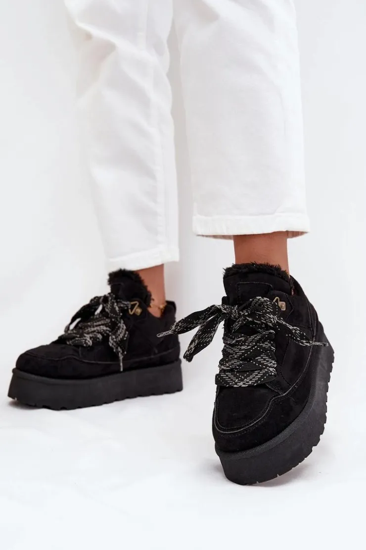Śniegowce damskie w sportowym stylu wykonane z miękkiego eko zamszu to idealny wybór na zimowe dni. Osadzone na solidnej platformie skutecznie izolują od chłodu, a ocieplenie miękkim futerkiem zapewnia komfort i ciepło. Sznurowany fason pozwala na dobre dopasowanie do stopy, podkreślając jednocześnie casualowy, miejski charakter butów. To praktyczny i stylowy model, który doskonale sprawdzi się w codziennych zimowych stylizacjach. Przy wyborze rozmiaru prosimy sugerować się tabelą rozmiarów.