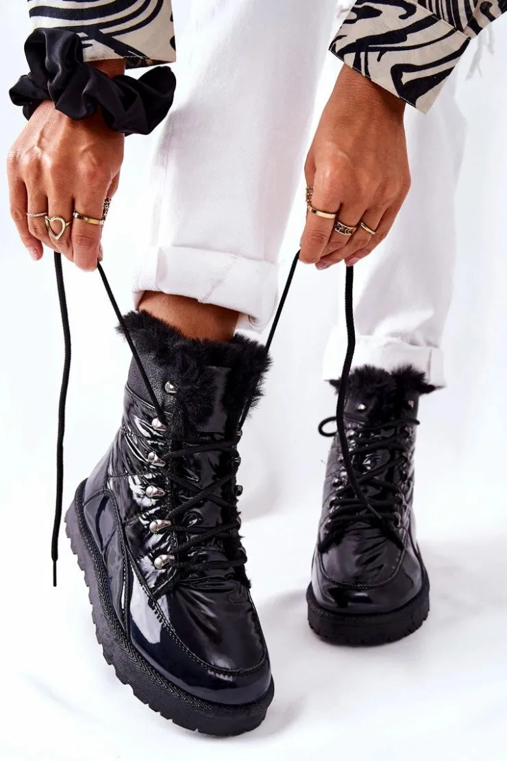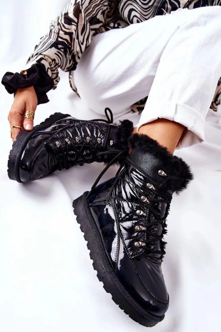 Ocieplane futerkiem śniegowce pomogą Ci przetrwać chłodniejsze dni! Zewnętrzna część buta została wykonana z materiału tekstylnego oraz lakierowanej eko skóry. Zapinane są na suwak. Futerko ma dłuższe włosie oraz jest bardzo miłe w dotyku. Przy wyborze rozmiaru prosimy kierować tabelą rozmiarów.