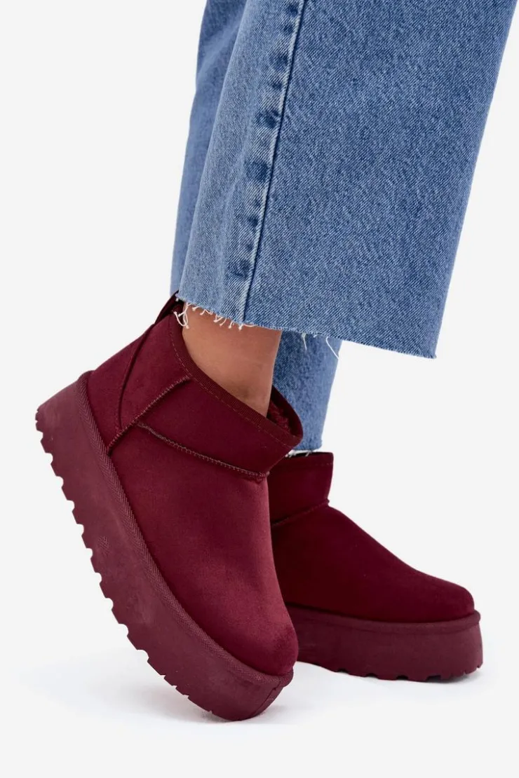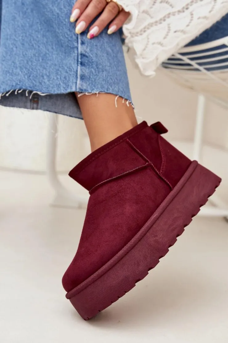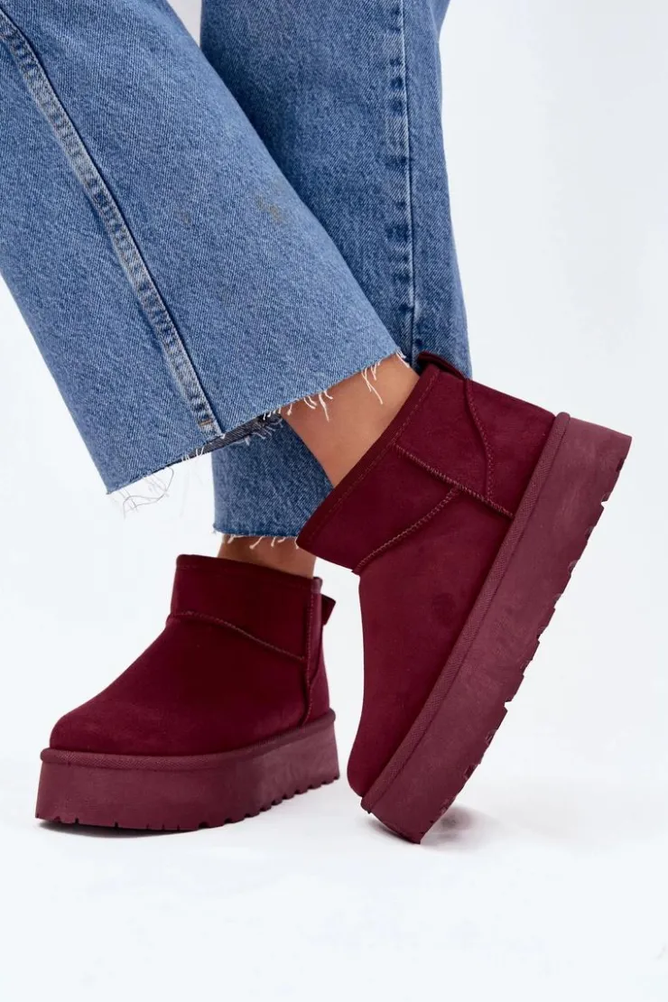 Boto Śniegowce Damskie*Zamszowe Śniegowce Na Platformie Bordowe Corcoran
