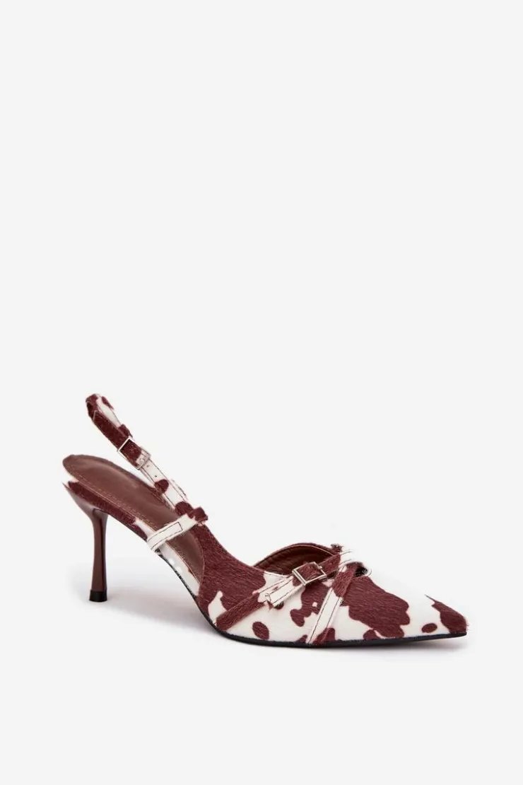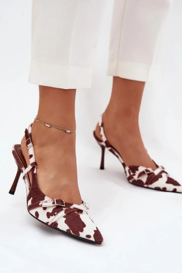 Czółenka damskie z odkrytą piętą, osadzone na szpilce, to doskonała propozycja na wyjątkowe okazje. Z przodu znajdują się dwa przeplatające się paseczki ozdobione małymi klamrami, które dodają im subtelnego uroku. Szpiczaste noski wydłużają nogi, nadając sylwetce smukłości i elegancji. Idealne na wieczorne wyjścia, wesela czy inne uroczystości. Przy wyborze rozmiaru prosimy kierować się tabelą rozmiarów