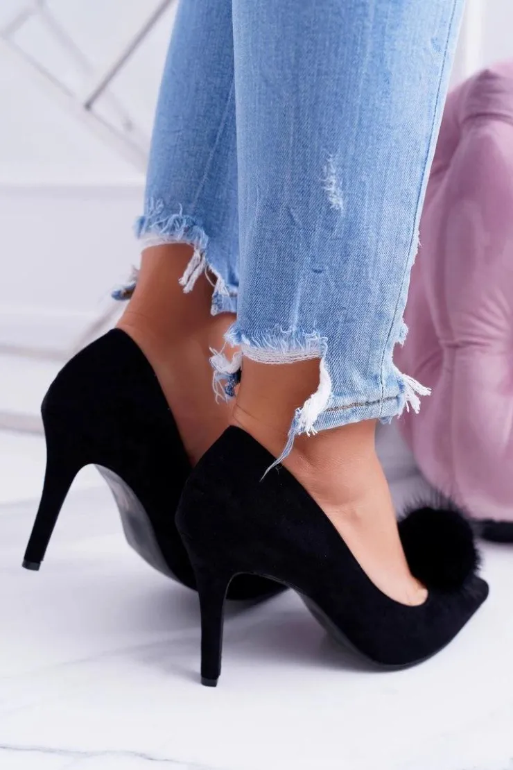 Boto Szpilki Zamszowe*Szpilki damskie Czarne Zamszowe Lu Boo Pompon