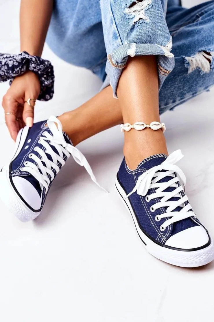 Klasyczne trampki damskie. Buty posiadają gumową podeszwę oraz miękką cholewkę. Ponadczasowy model, dostępny w wielu pięknych kolorach! Przy wyborze rozmiaru prosimy sugerować się tabelą rozmiarów.