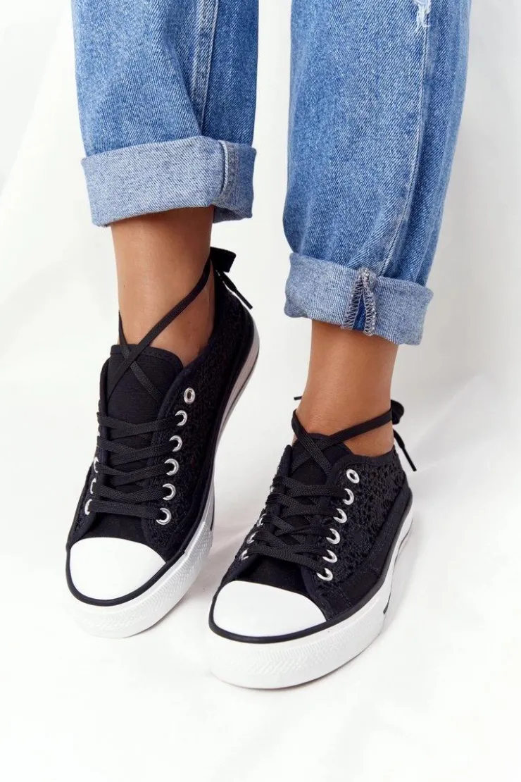 Wyjątkowe damskie trampki. Koronkowe tenisówki pasują do wielu letnich stylizacji. Buty dobrze dopasowują się do kształtu stopy, posiadają miękką, materiałową wkładkę oraz antypoślizgową podeszwę. Koniecznie sprawdź całą naszą kolekcję damskich trampek. Przy wyborze rozmiaru prosimy sugerować się tabelą rozmiarów.