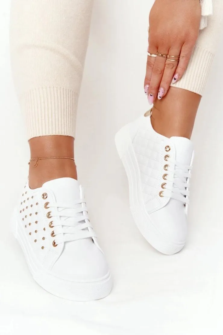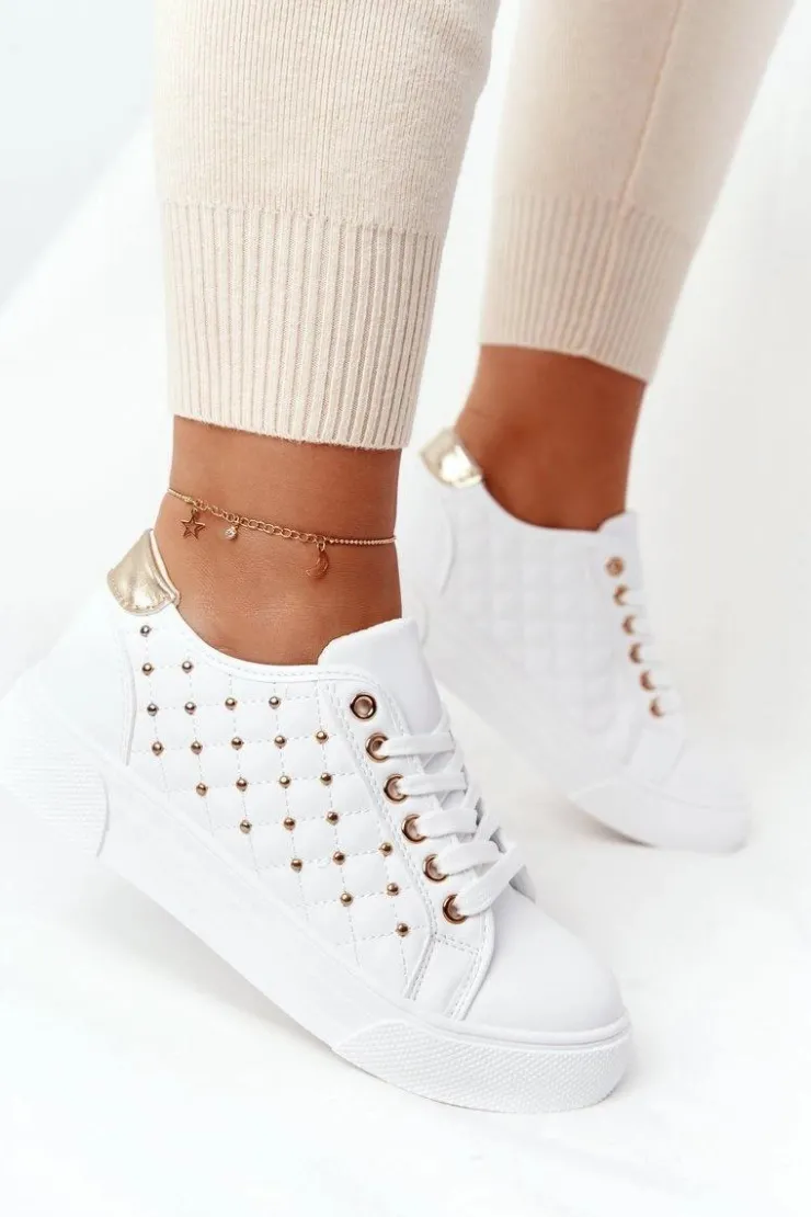 Wyjątkowe tenisówki damskie z pikowaniem. Buty wykonane są z eko skóry, posiadają materiałową wkładkę. Wyjątkowy model dopełni wiele Twoich stylizacji. Koniecznie sprawdź całą naszą kolekcję damskich tenisówek! Przy wyborze rozmiaru prosimy kierować tabelą rozmiarów.