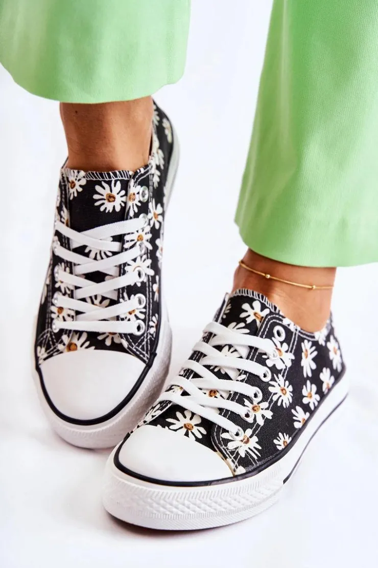 Damskie trampki o klasycznym fasonie i modnym wzorze w kwiaty. Kultowe już trampki pasują do wielu stylizacji. Buty dobrze dopasowują się do kształtu stopy. Zostały wykonane z materiału tekstylnego. Posiadają miękką, materiałową wkładkę oraz antypoślizgową podeszwę. Model wiązany. Nosek został wzmocniony gumowym tworzywem. Koniecznie sprawdź całą naszą kolekcję damskich trampek. Przy wyborze rozmiaru prosimy sugerować się tabelą rozmiarów.