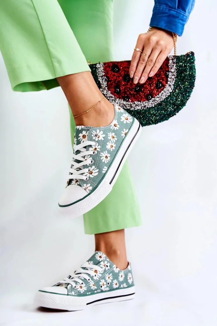Damskie trampki o klasycznym fasonie i modnym wzorze w kwiaty. Kultowe już trampki pasują do wielu stylizacji. Buty dobrze dopasowują się do kształtu stopy. Zostały wykonane z materiału tekstylnego. Posiadają miękką, materiałową wkładkę oraz antypoślizgową podeszwę. Model wiązany. Nosek został wzmocniony gumowym tworzywem. Koniecznie sprawdź całą naszą kolekcję damskich trampek. Przy wyborze rozmiaru prosimy sugerować się tabelą rozmiarów.