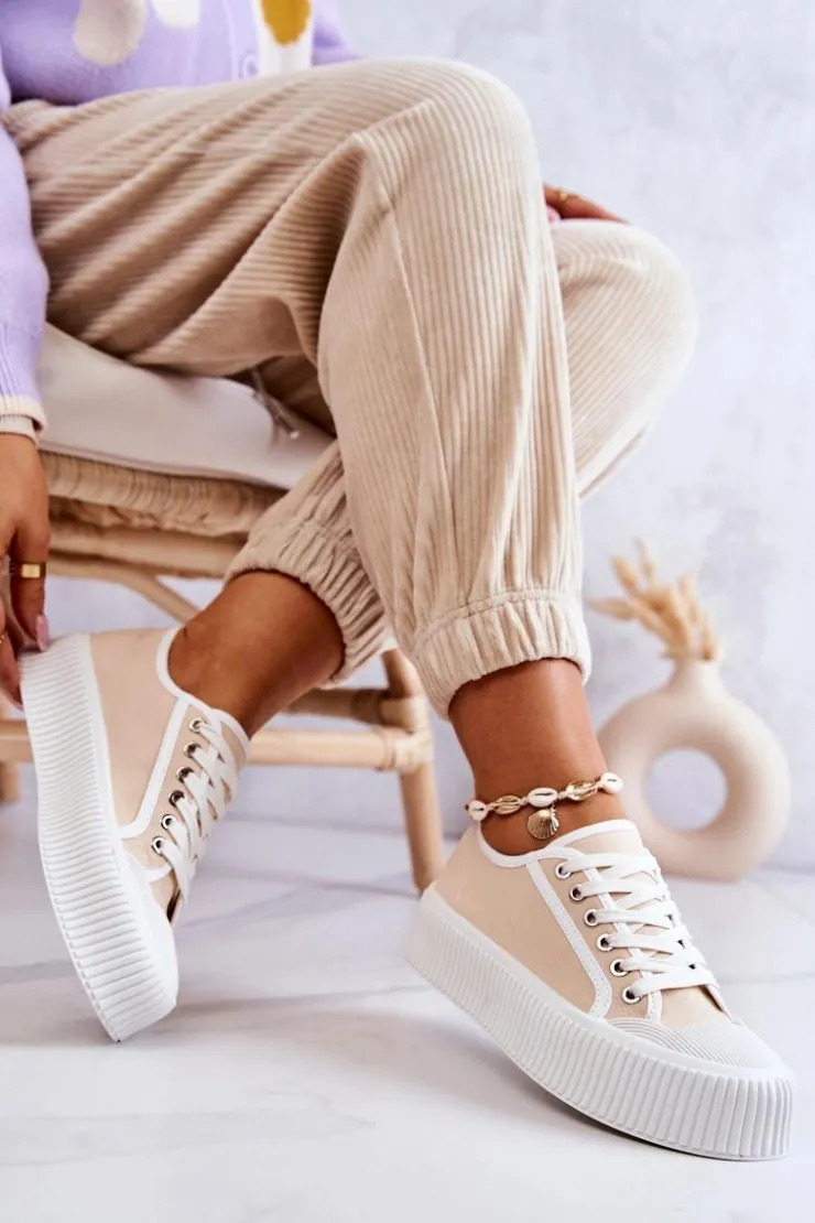 Modne trampki na masywnej, gumowej platformie. Buty posiadają materiałową cholewkę oraz antypoślizgową podeszwę. Świetny model, który będzie pasował do wielu stylizacji! Nosek jest wzmacniany gumowym tworzywem. Trampki posiadają klasyczne wiązanie. Koniecznie sprawdź całą naszą kolekcję trampek! Przy wyborze rozmiaru prosimy sugerować się tabelą rozmiarów.