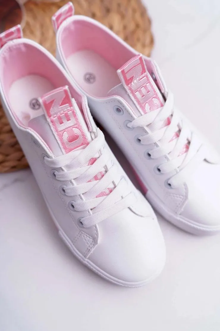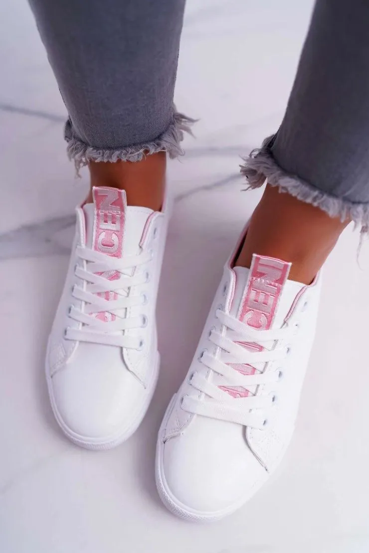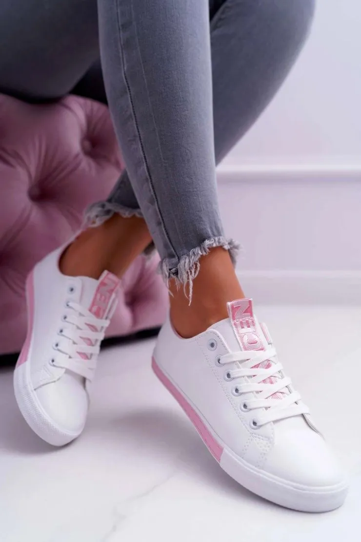 Boto Trampki Damskie Niskie*Trampki Damskie Białe Różowy Pasek Nigrid