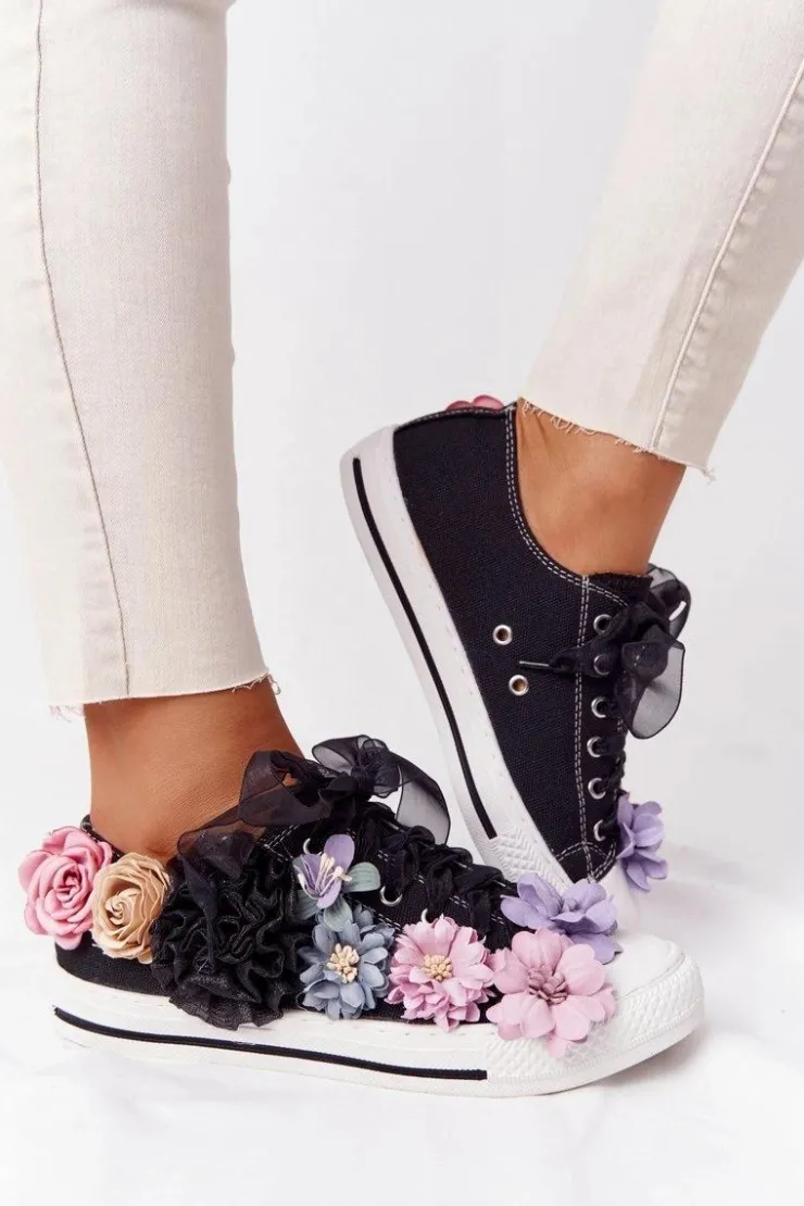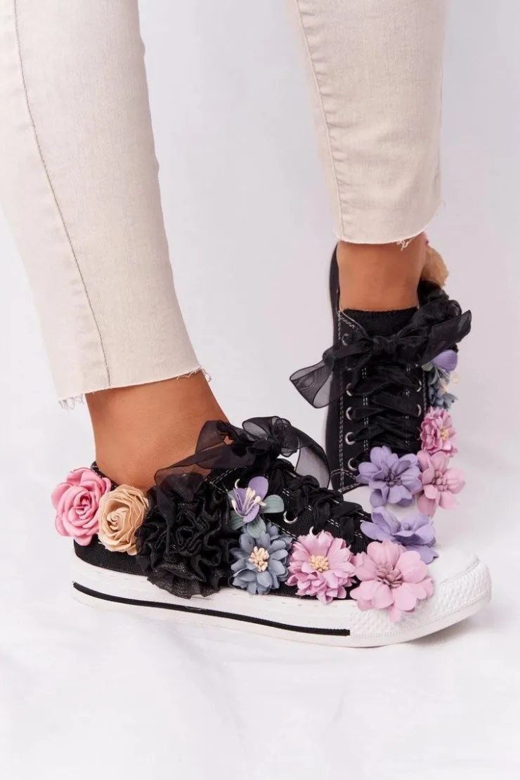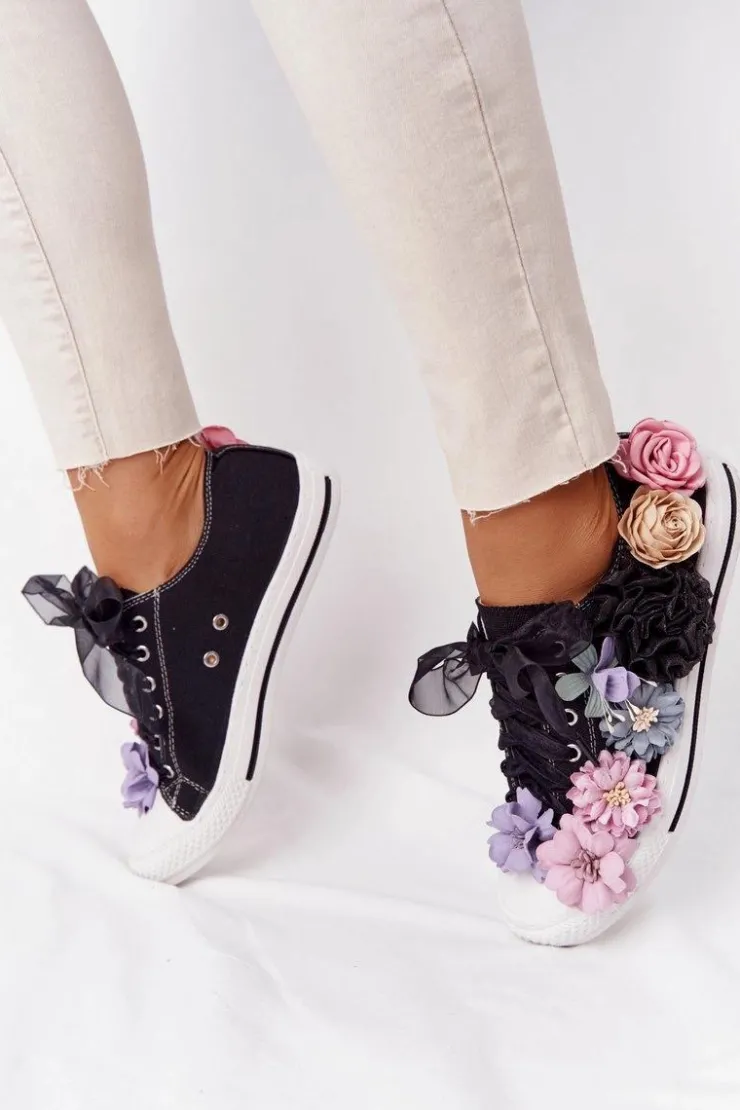 Boto Trampki Damskie Niskie*Trampki Z Kwiatam Lu Boo Czarne