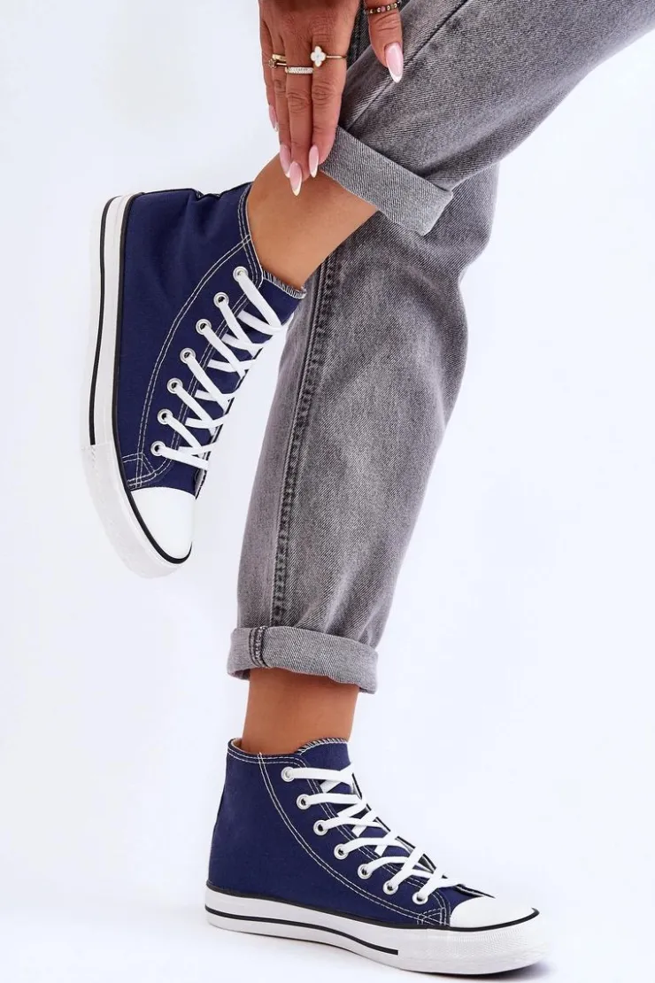 Boto Trampki Damskie Wysokie*Damskie Trampki Klasyczne Wysokie Granatowe Remos Niebieski