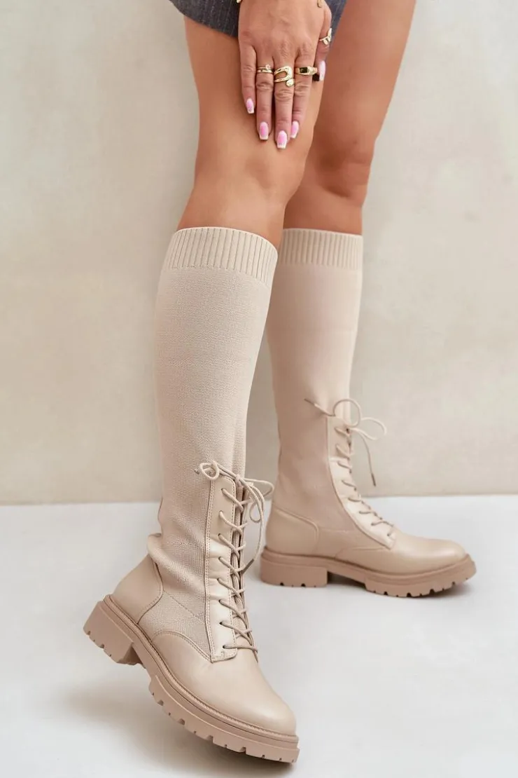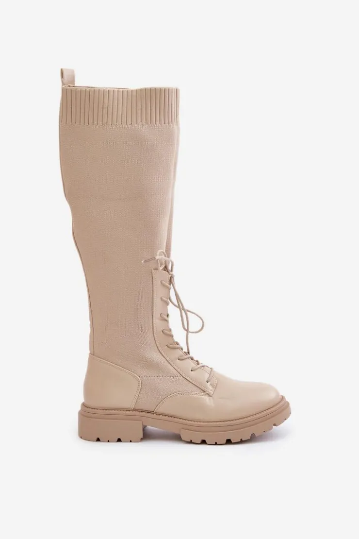 Damskie kozaki wykonane z połączenia ekologicznej skóry i materiału tekstylnego. Model wyróżnia się zaokrąglonymi noskami, które gwarantują komfort noszenia. Wnętrze butów jest ocieplone kocem obuwniczym, ograniczonym do części stopy. Elastyczna cholewka ze sznurowaniem nowoczesny, stylowy charakter. Przy wyborze rozmiaru prosimy kierować tabelą rozmiarów.