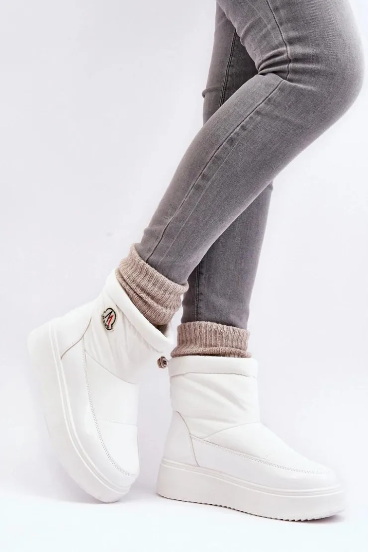 Klasyczne śniegowce damskie wykonane z połączenia materiału tekstylnego i eko skóry. Osadzone na platformie. Wnętrze ocieplone grubym futerkiem. Model wsuwany z cholewką za kostkę. Ściągacz na górze cholewki. Idealne dla osób, które cenią sobie wygodę oraz ciepło w mroźne dni! Po prostu musisz je mieć! Przy wyborze rozmiaru prosimy sugerować się tabelą rozmiarów.