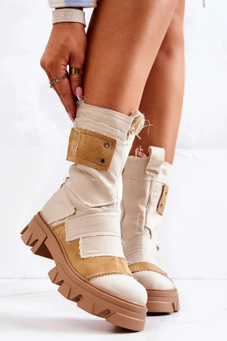 Wysokie botki – workery zostały wykonane z materiału tekstylnego. Masywna podeszwa z szerokim obcasem zapewnia stabilność na każdym kroku. Zapinane na suwak. Posiadają eko skórzaną wkładkę. Cholewka od środka jest wykonana z miękkiej tkaniny. Ciekawy wzór sprawi, że będziesz wyróżniać się spośród tłumu! Ten model to hit! Przy wyborze rozmiaru prosimy sugerować się tabelą rozmiarów.
