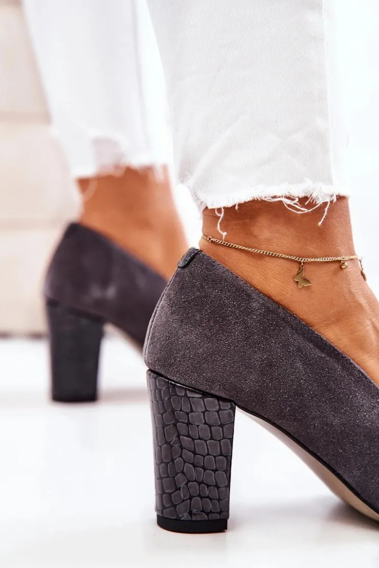 Piękne czółenka są wykonane z naturalnej skóry. Modny wzór na przodzie oraz obcasie. Miękka wkładka z naturalnej skóry daje poczucie komfortu na każdym kroku. Buty wykonane z dbałością o szczegóły. Nie możesz przejść obojętnie obok tego modelu! Nie zwlekaj i kup już dziś! Przy wyborze rozmiaru prosimy sugerować się tabelą rozmiarów, która dostępna jest po najechaniu bądź kliknięciu w dany rozmiar.