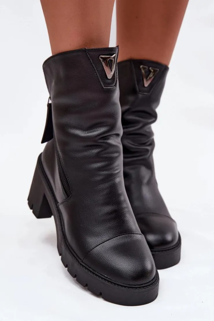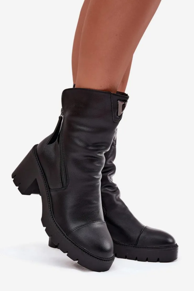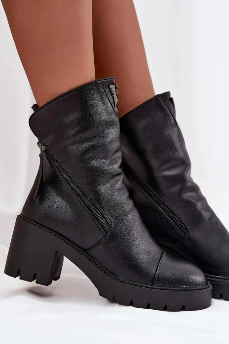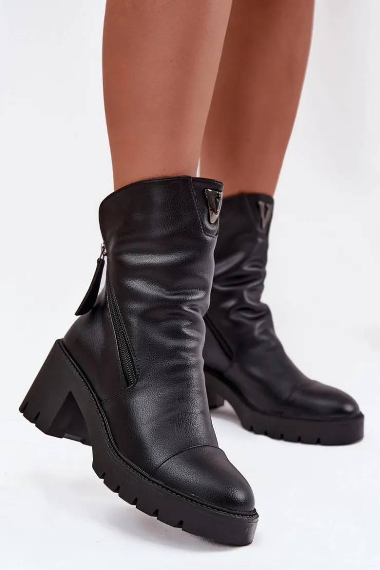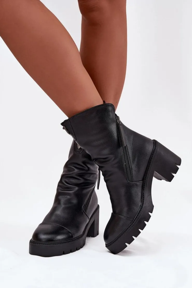 Botki damskie od marki Vinceza to połączenie wyrazistego stylu z praktycznym komfortem. Osadzone na masywnym obcasie, zapewniają stabilny krok i modny wygląd, a podwójny zamek umożliwia szybkie zakładanie. Model jest ocieplany, co gwarantuje ciepło w chłodniejsze dni, a subtelny detal i delikatne marszczenie cholewki dodają charakteru i oryginalnego, eleganckiego akcentu. Idealne do codziennych stylizacji, które łączą wygodę z modnym lookiem. Przy wyborze rozmiaru prosimy sugerować się tabelą rozmiarów.