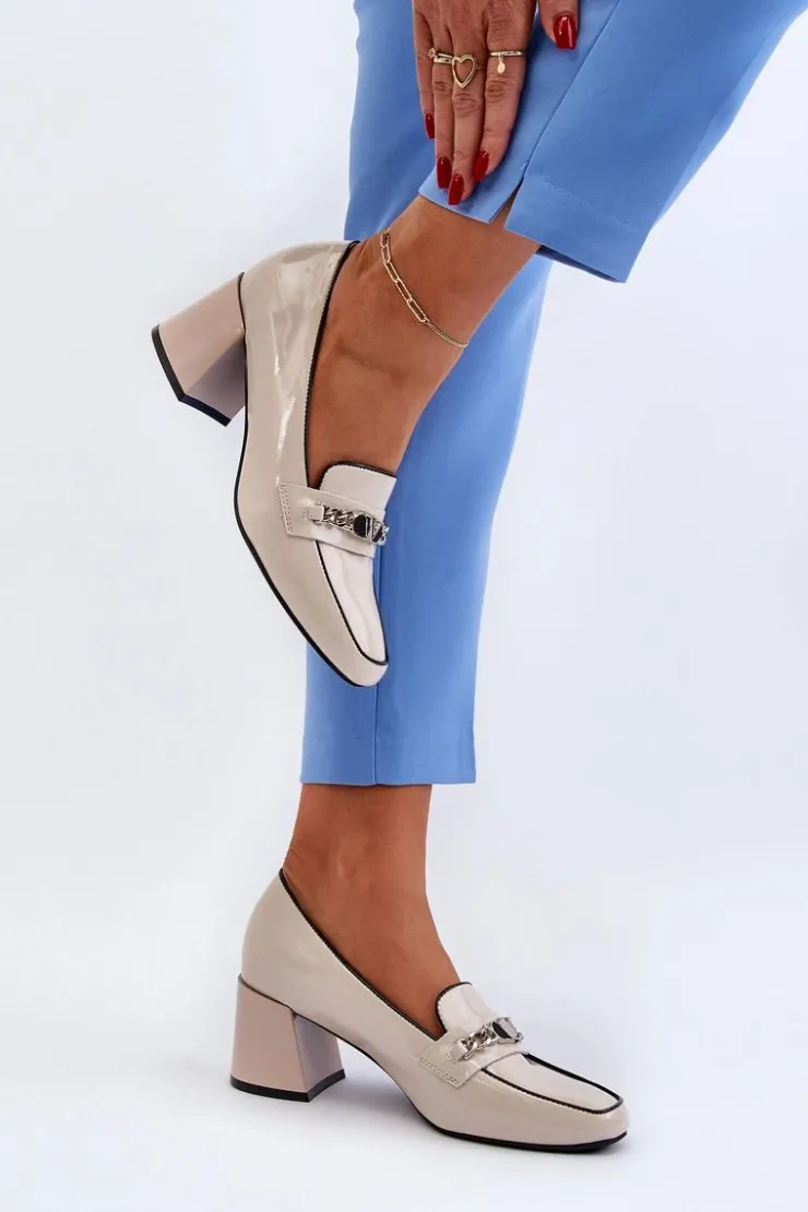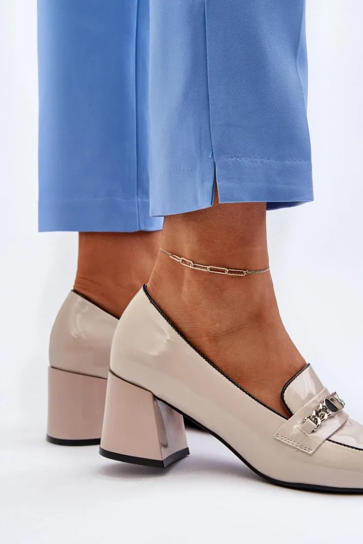 Skórzane czółenka powinny znaleźć się w szafie każdej kobiety. Model ten osadzony został na niskim, stabilnym obcasie. Usztywniony zapiętek zapewnia dodatkową stabilność i wsparcie dla stopy, co jest szczególnie istotne podczas noszenia. Z przodu znajduje się paseczek z ozdobą. Noski zaokrąglone. Wkładka ze skóry naturalnej zapewni wygodę podczas użytkowania. Koniecznie powinnaś je mieć! Przy wyborze rozmiaru prosimy sugerować się tabelą rozmiarów.