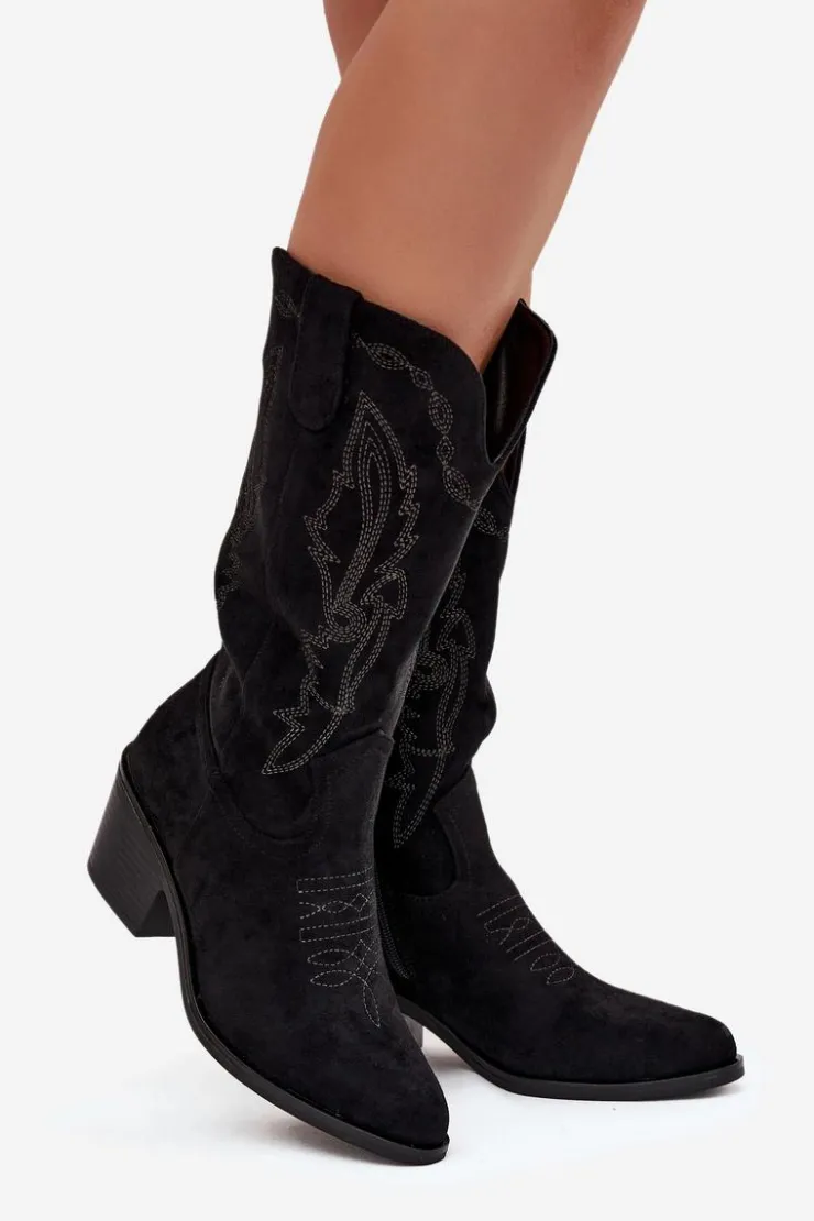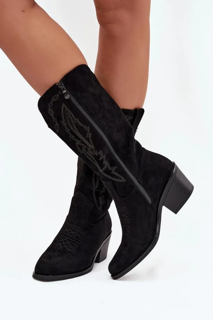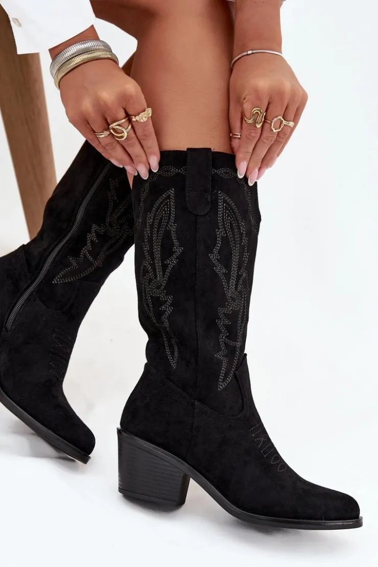 Kozaki kowbojki od marki Vinceza to połączenie klasycznego westernowego stylu z nowoczesnym, miejskim lookiem. Wykonane z eko zamszu, prezentują się lekko i stylowo, a charakterystyczne przeszycia podkreślają kowbojski charakter butów. Noski w kształcie migdała dodają im kobiecego akcentu, a stabilny obcas zapewnia wygodę i pewny krok. Model jest ocieplany, co gwarantuje komfort w chłodniejsze dni, a zamek po boku ułatwia szybkie zakładanie. Przy wyborze rozmiaru prosimy sugerować się tabelą rozmiarów.