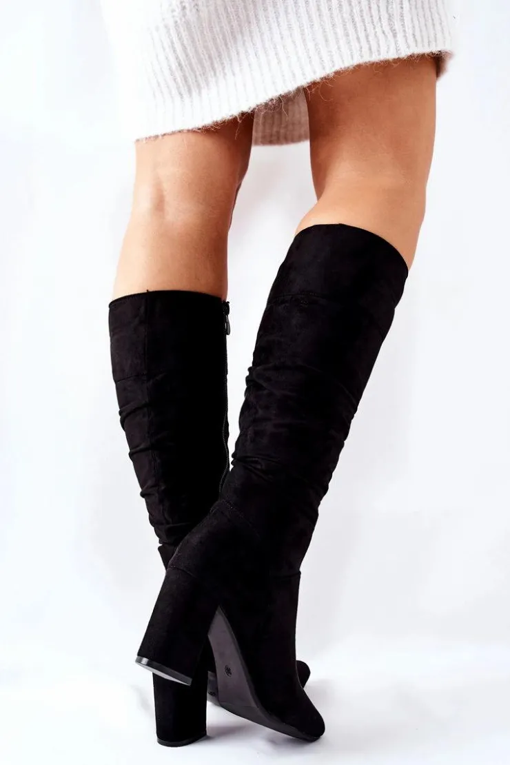 Piękne kozaki na słupku wykonane z zamszowej skóry ekologicznej. Buty osadzone na niewysokim słupku. Zapinanie z boku cholewki ułatwi zakładanie. Przy wyborze rozmiaru prosimy sugerować się tabelą rozmiarów.