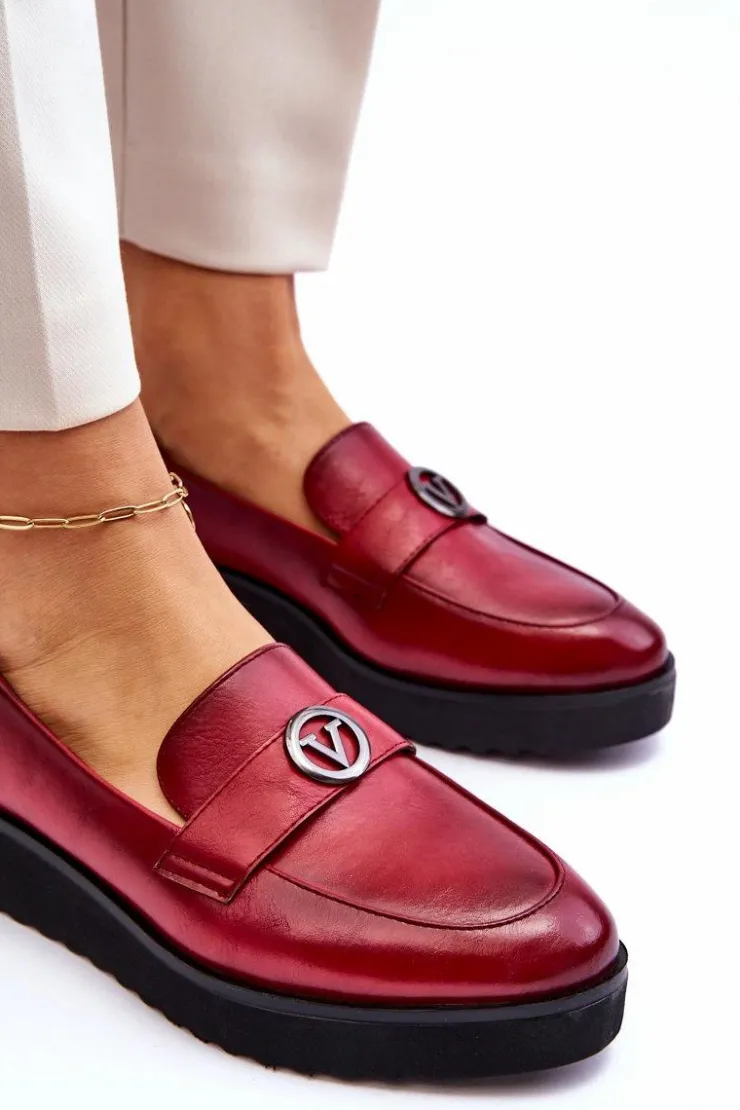 Buty damskie Vinceza Mokasyny Damskie Skórzane*Damskie Skórzane Mokasyny Na Niskim Koturnie Czerwone Synthia