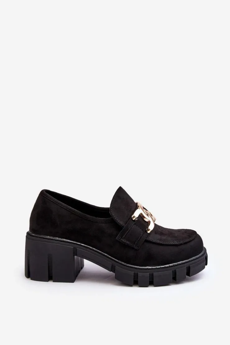 Półbuty damskie wykonane z eko zamszu. Osadzone na masywnym, niskim obcasie. Z przodu złota ozdoba z tworzywa sztucznego. Noski zaokrąglone. Usztywniony zapiętek. Świetny model do wielu stylizacji! Wygodne, a zarazem modne. Koniecznie musisz je mieć! Przy wyborze rozmiaru prosimy sugerować się tabelą rozmiarów.