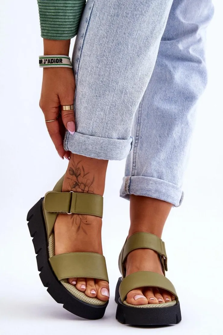 Damskie sandałki zostały wykonane z eko skóry. Model posiada zapinanie na rzepy. Wkładka w tych butach jest perforowana oraz niezwykle miękka. Została wykonana także z eko skóry. Sandałki osadzono na masywnej platformie oraz delikatnym koturnie. Świetny model na upalne dni! Przy wyborze rozmiaru prosimy sugerować się tabelą rozmiarów.