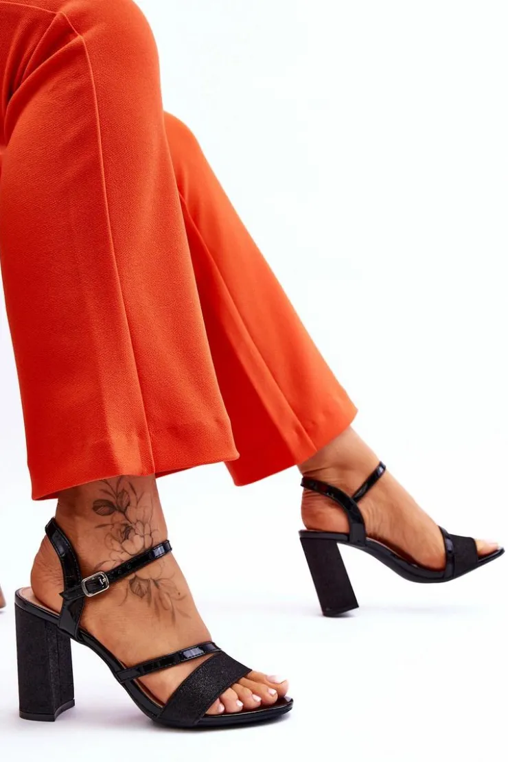 Buty damskie Vinceza Sandały Na Obcasie*Błyszczące Sandały Na Obcasie Czarne Alicia Czarny