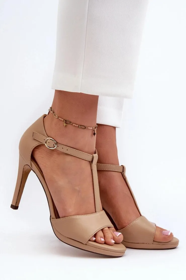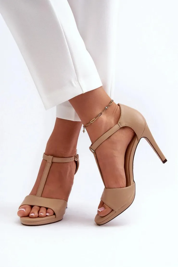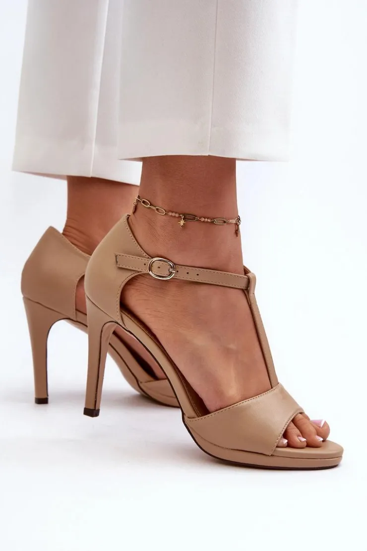 Buty damskie Vinceza Sandały Na Obcasie*Sandały Damskie Na Szpilce Z Eko Skóry Beżowe Obdaria Beżowy